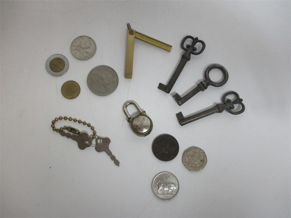 Misc Lot, Keys, Foreign Coins and Miniature Locks