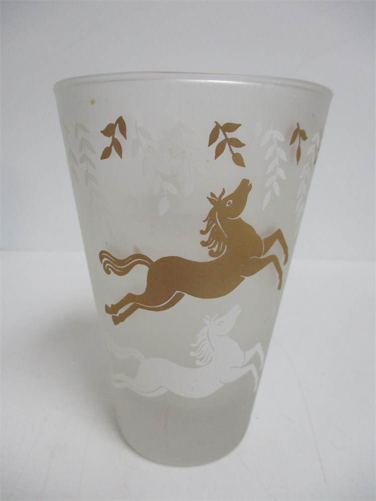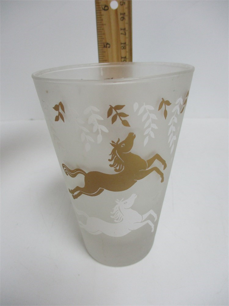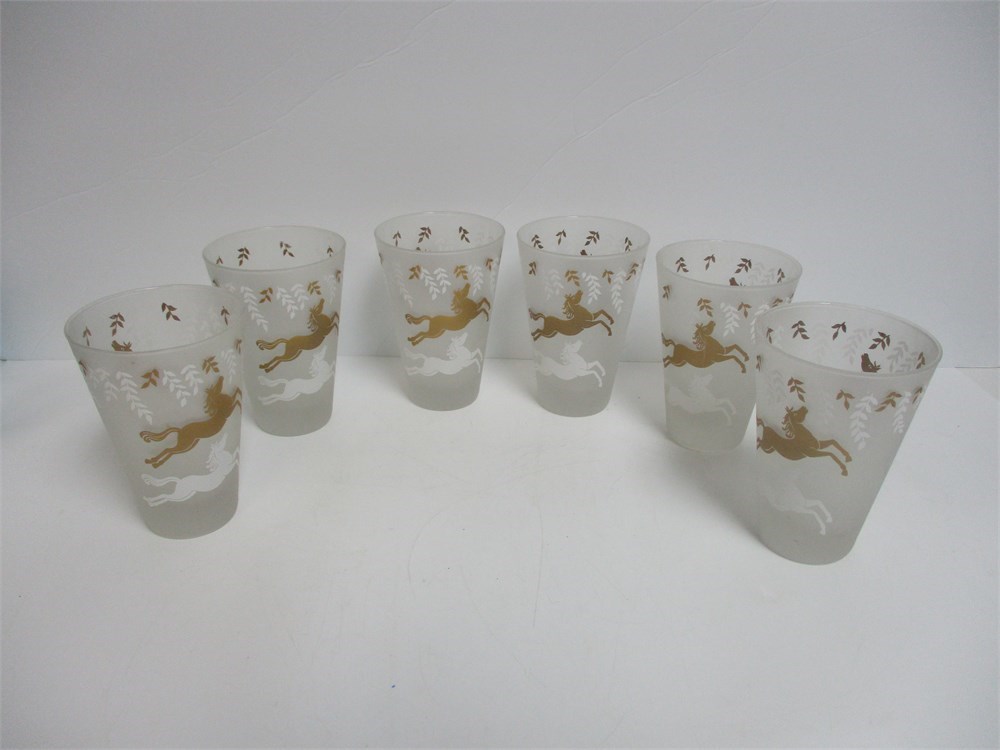 6 wonderful Vintage Frosted Glasses, Great Gold Design, MCM