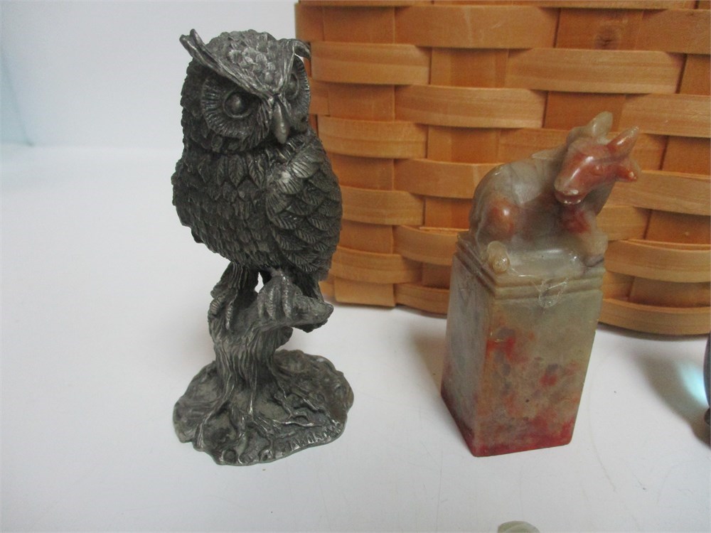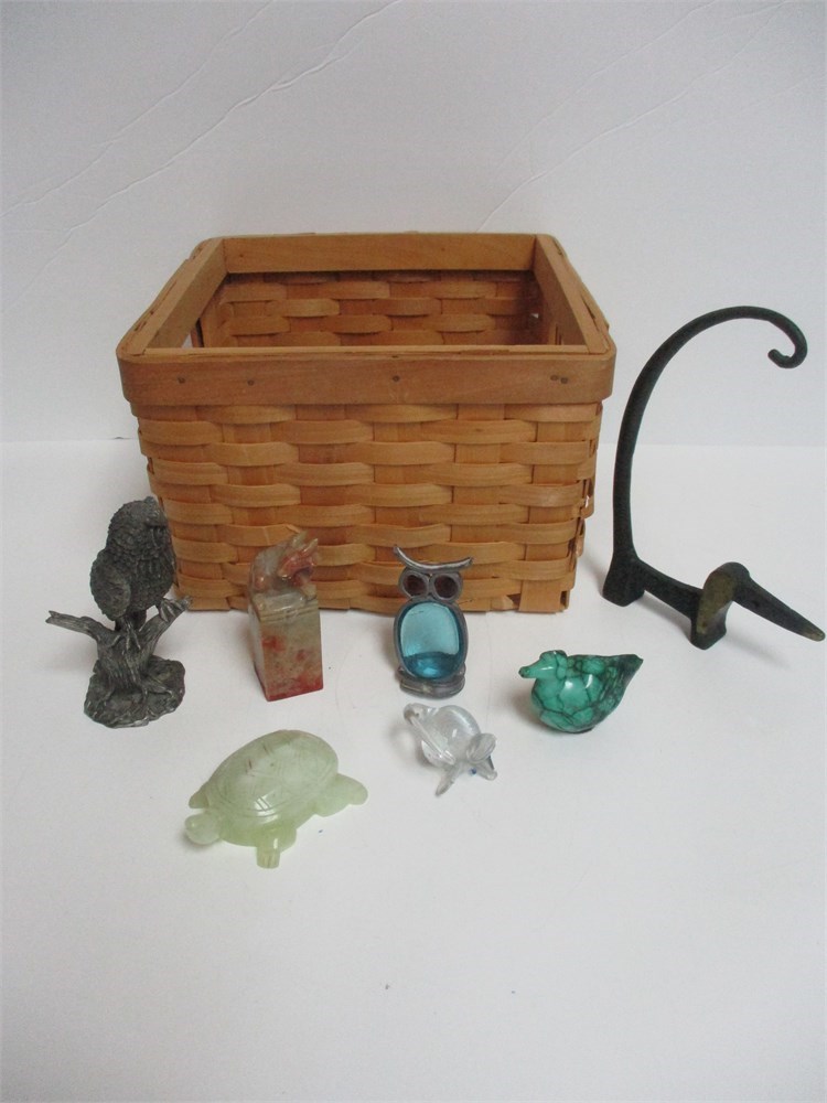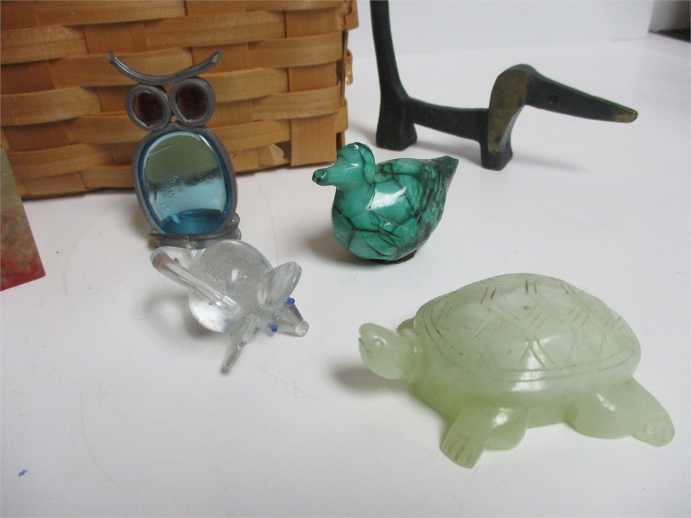 Box Lot Miscellaneous Items, Animal figurines and wicker basket