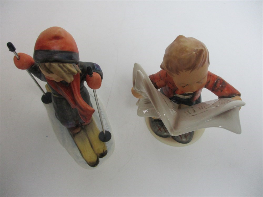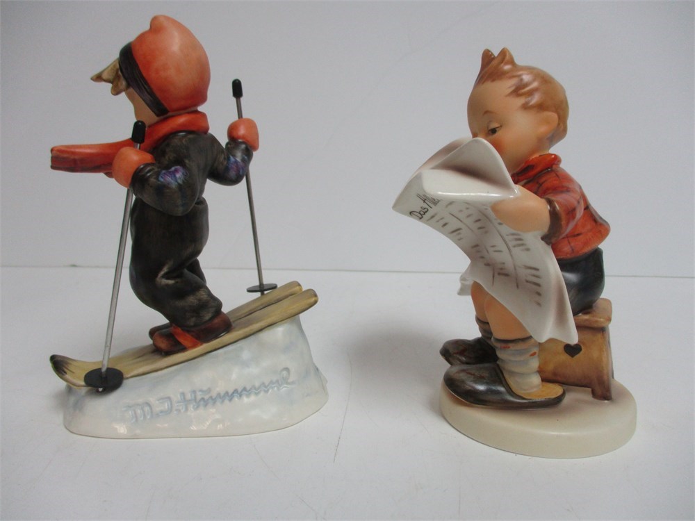 These Hummel Figurines are so adorable !  A young boy reading the paper and a young boy on ski's.  They are in Great condition.  Colors are bright and vivid.  Hallmarked on the bottom.  Hummels market has been down, but these are better ones so bid to win them!