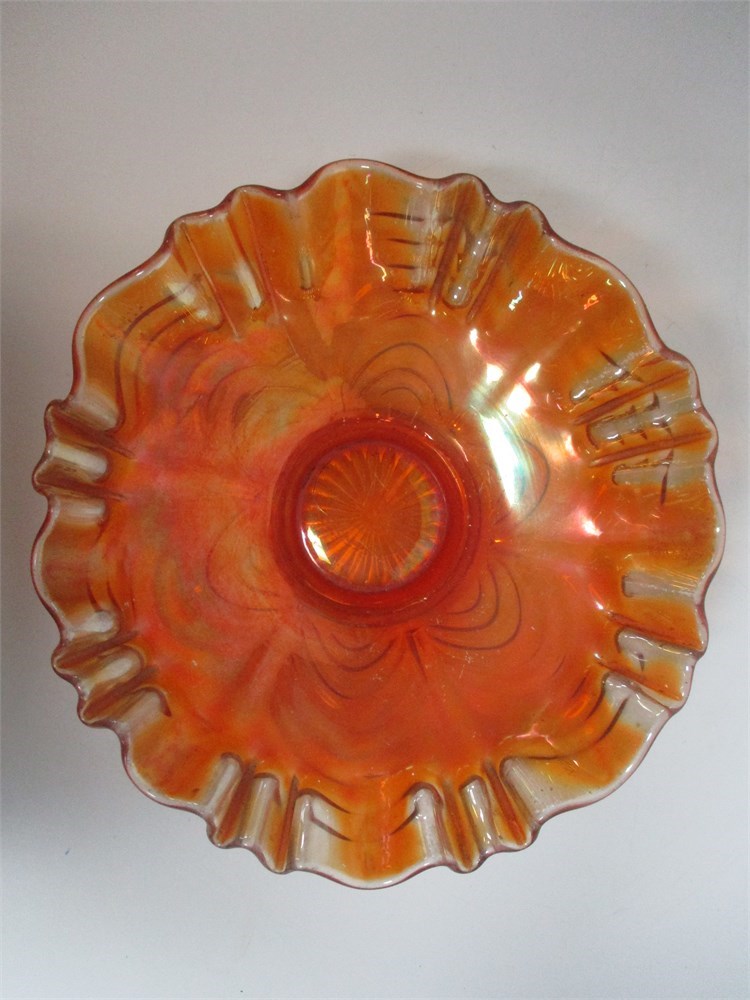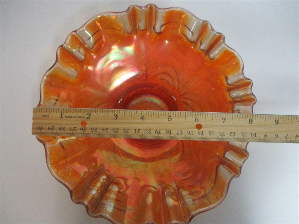 8" Fenton Marigold Carnival Glass Lettuce Edge Bowl