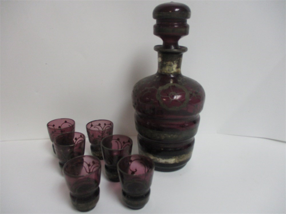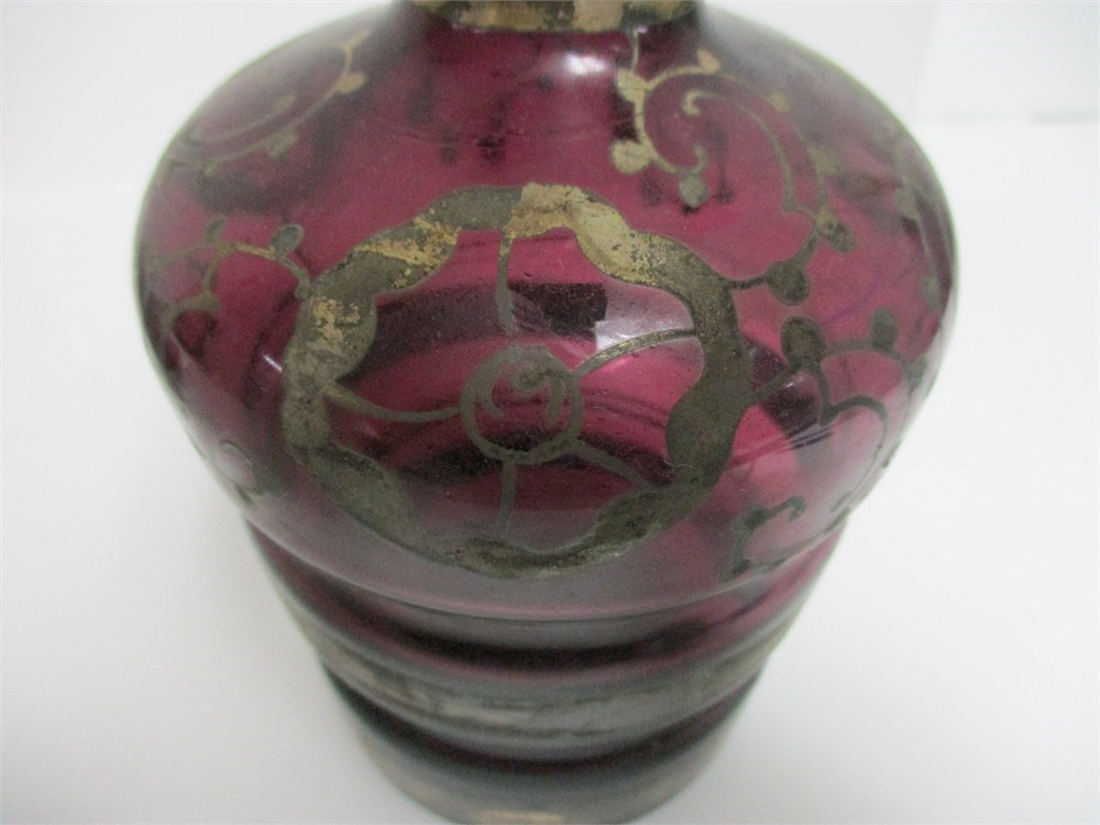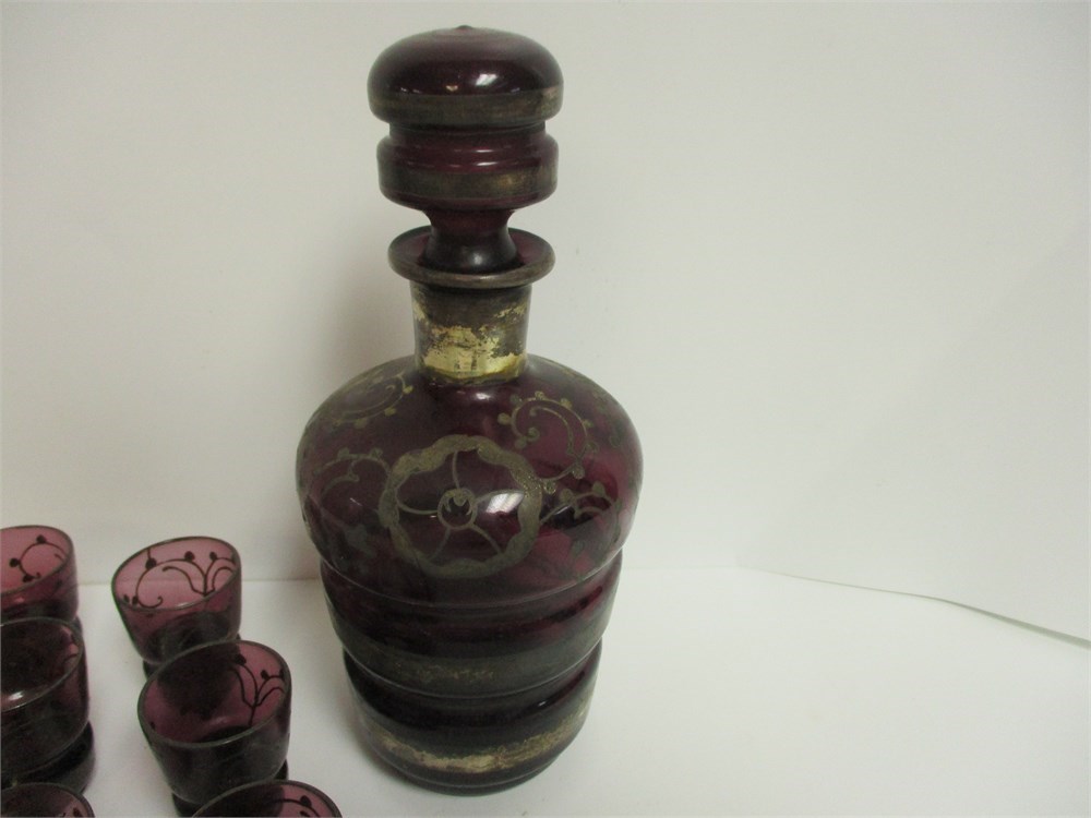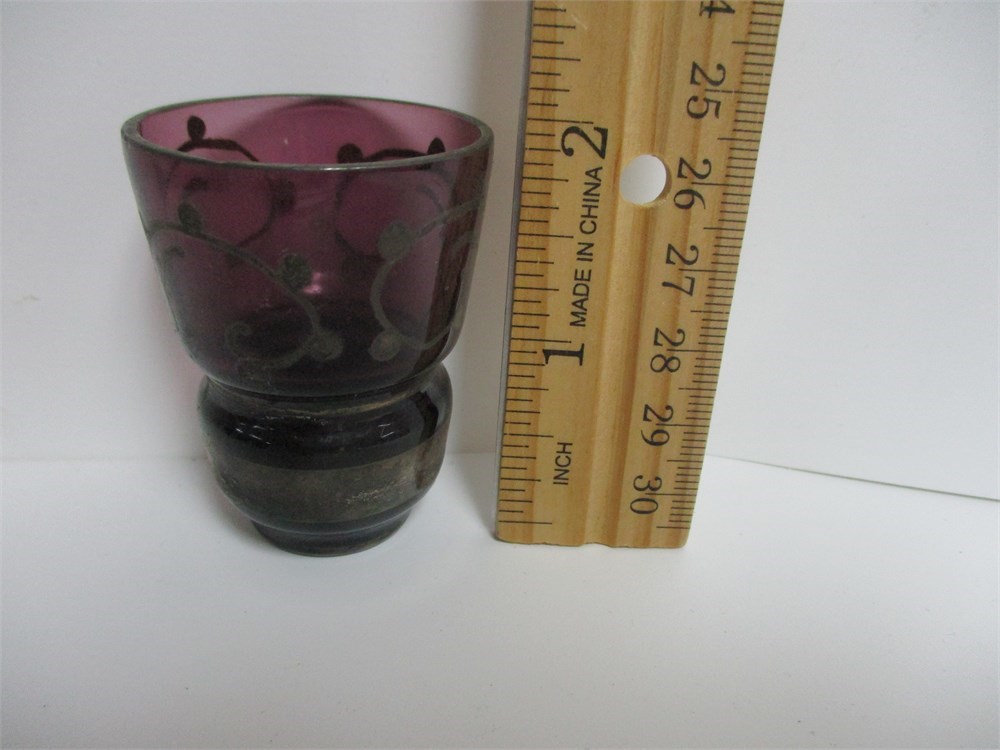 Antique Amethyst/Cranberry Glass Cordial with Silver/gilt overlay, Very Early