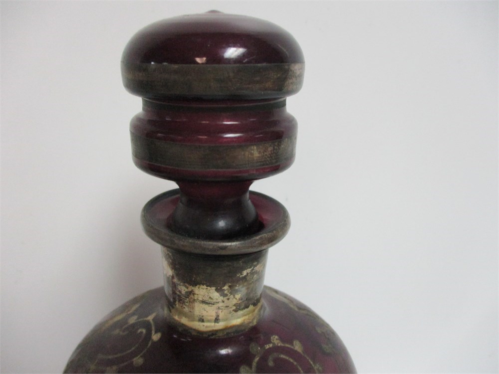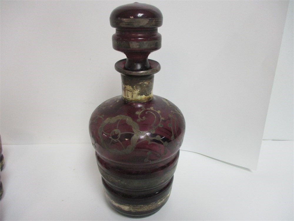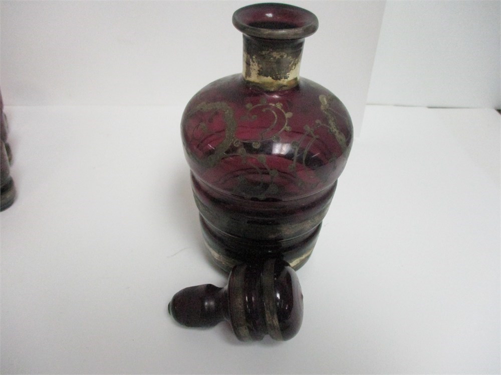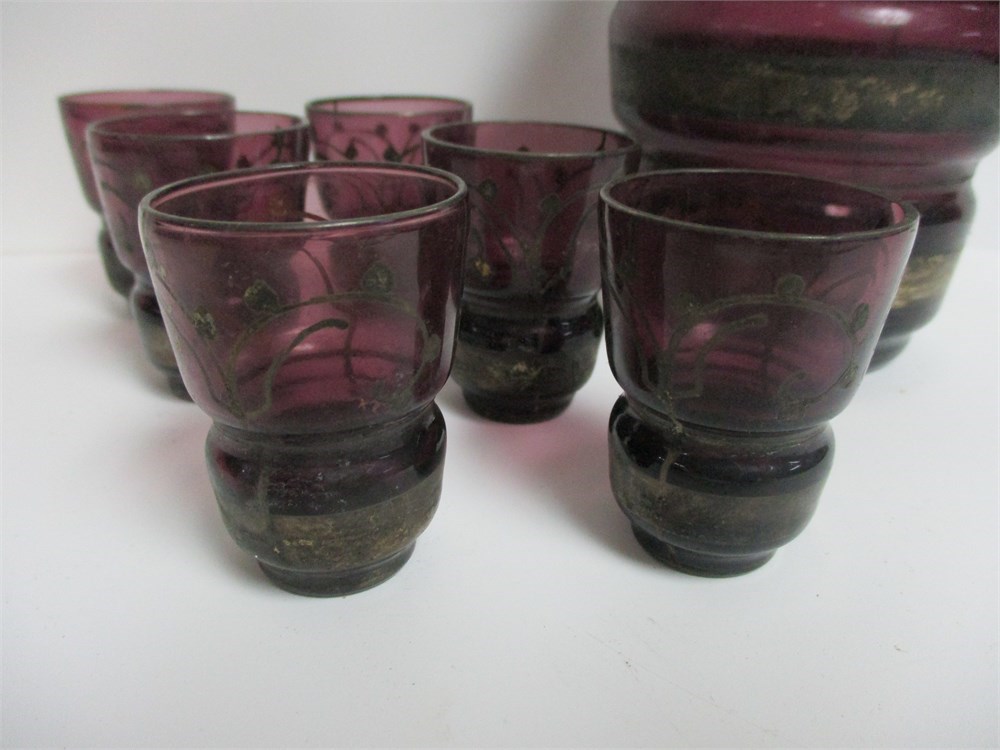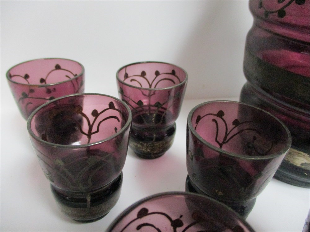 Antique Amethyst/Cranberry Glass Cordial with Silver/gilt overlay, Very Early