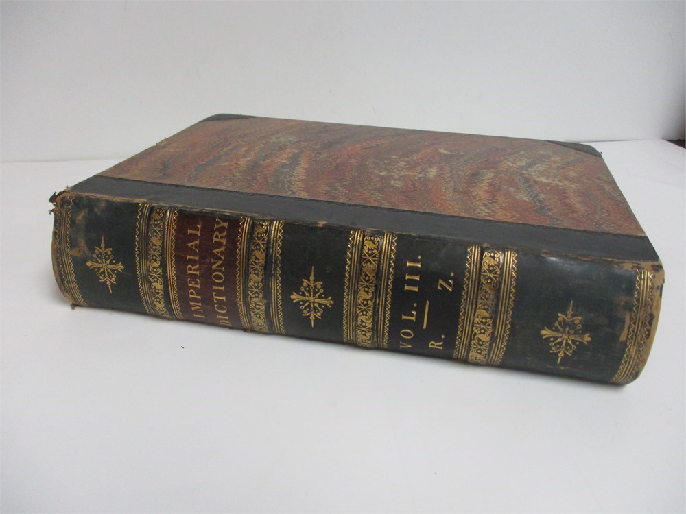 Nice Large Volume III, R-Z.  Leather spine with some wear, Marbled cover and page tips. Some foxing on pages, but in good condition.