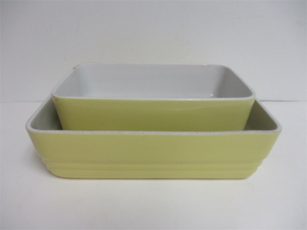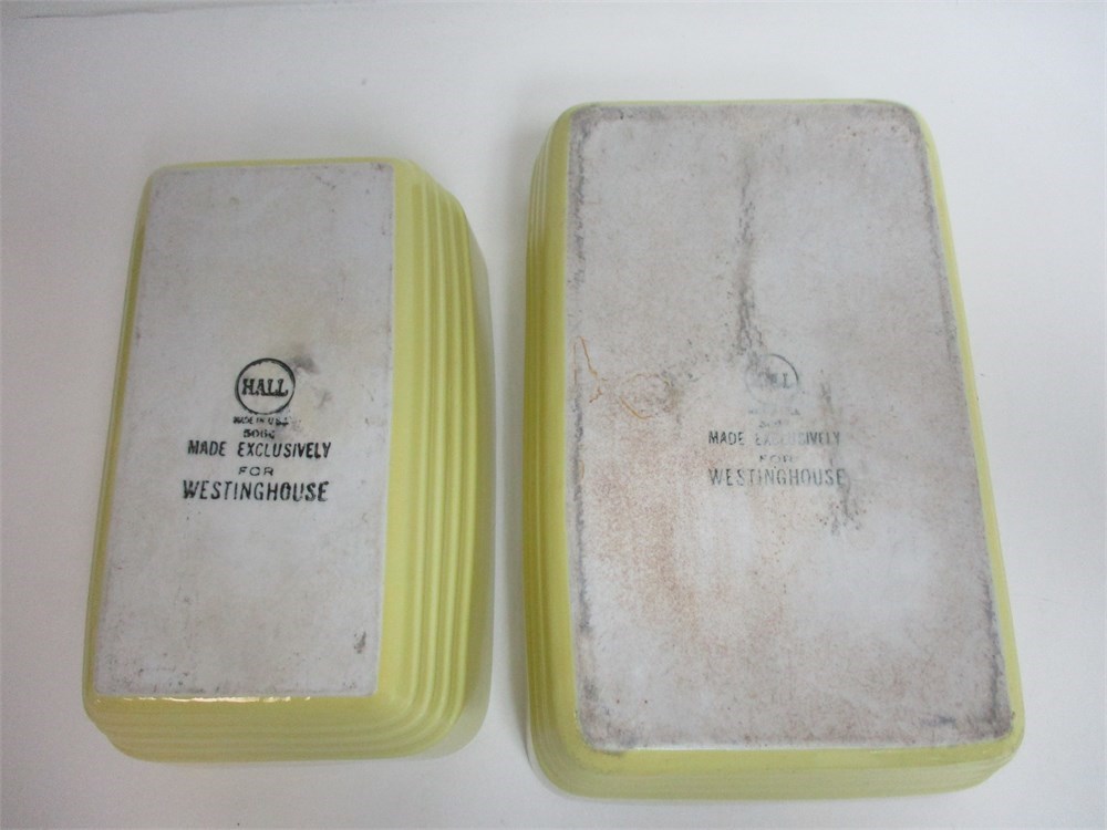Pair of Vintage, Yellow, HALL Baking Dishes, made for Westinghouse. Small 8 1/2 x 3 1/2,  Large 10 x 2 3/4".  Nice vintage condition.