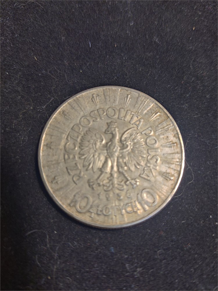 RARE old antique Vintage Polish Polska Silver COIN 10 Zlotych 1936 Pilsudski. Coin weighs 21.86g.