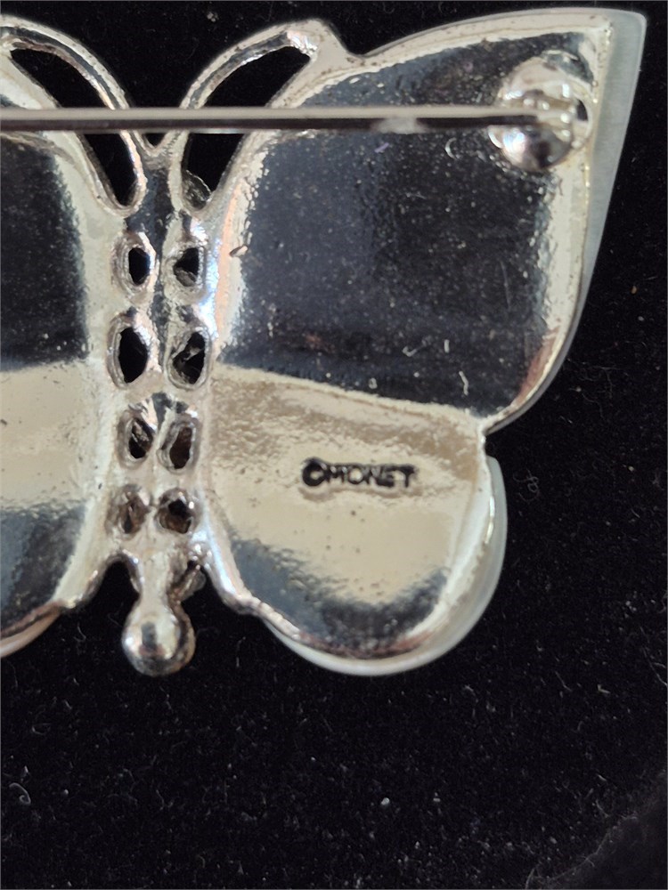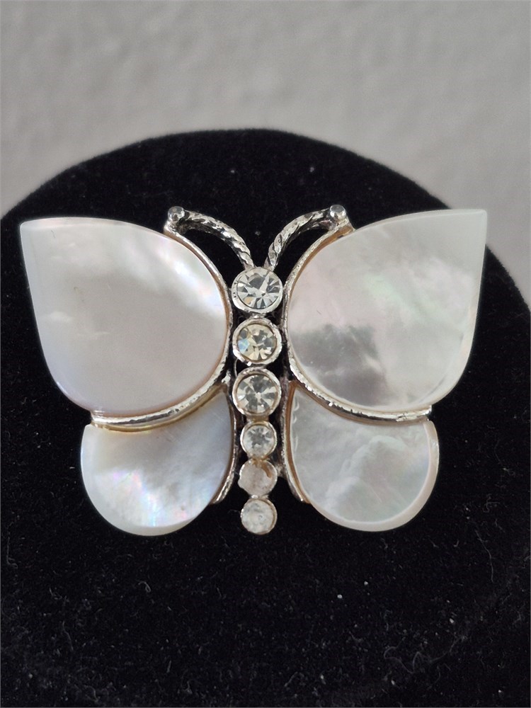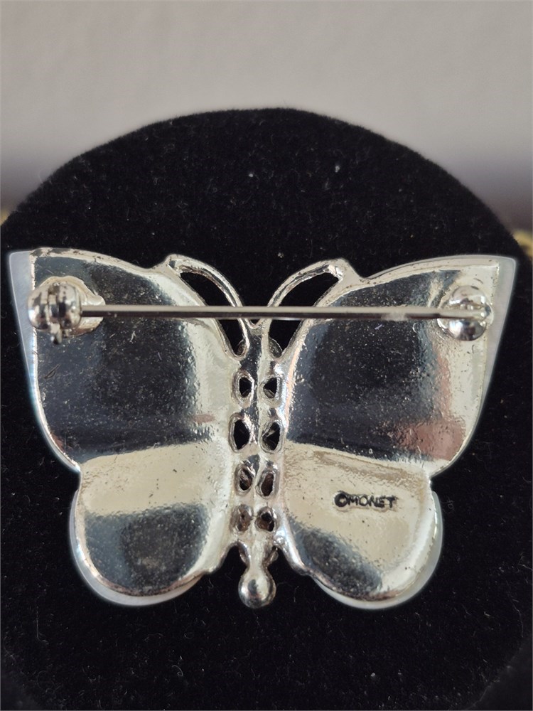 MONET Butterfly BROACH ~ MOP and cz diamonds "SIGNED"