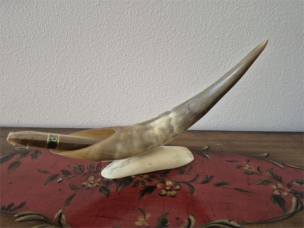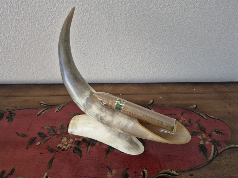 VTG Hand Crafted Steer Bull Horn Cigar/Pipe Rest Ashtray Western Cabin Decor