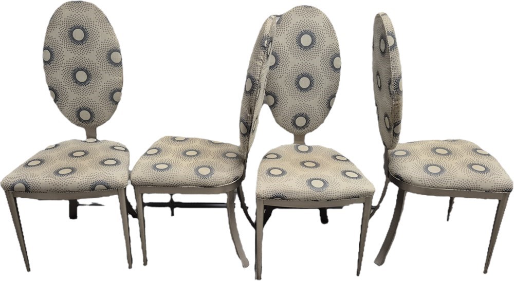 Brushed steel frame, chair glides, no damage or bends. Chairs are classic vintage, not readily available,