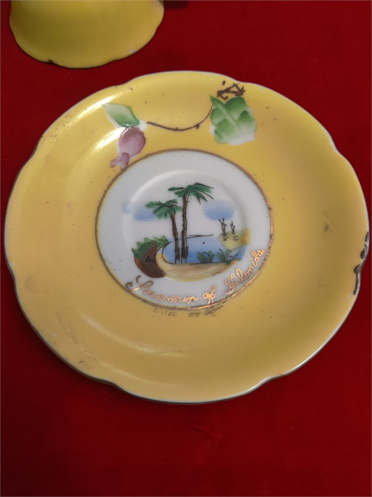 Nice vintage souvenir of Florida cup and saucer. Back of both pieces is marked made and occupied Japan.