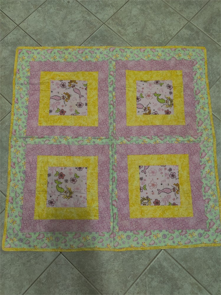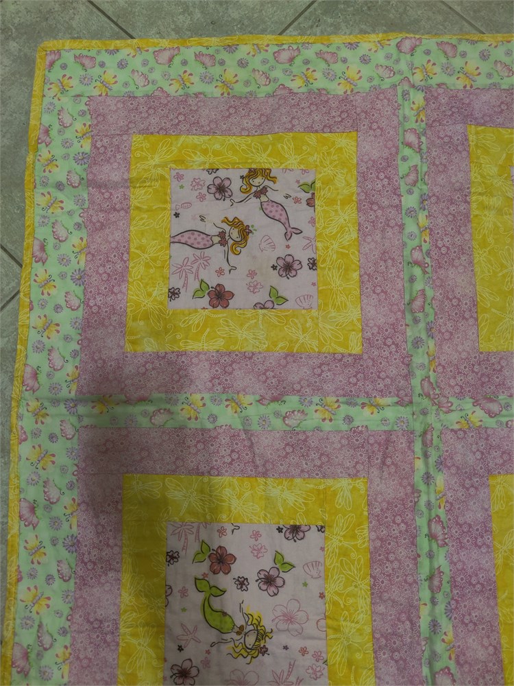 Very cute mermaid quilted blanket. Blanket measures 36 and a half by 36 and a half.