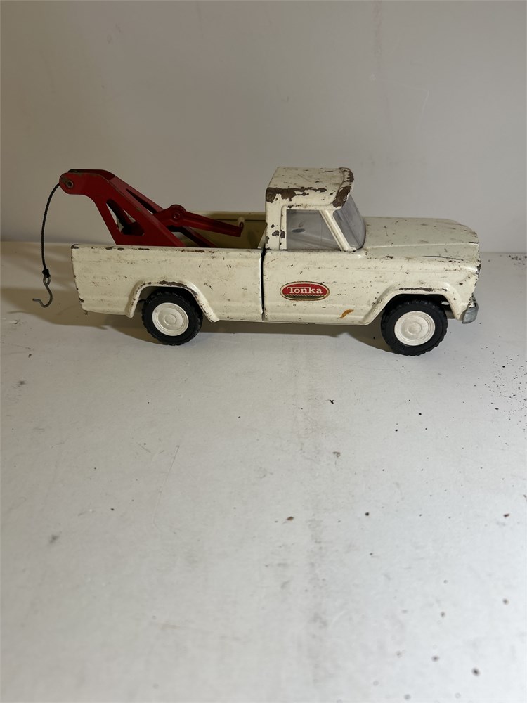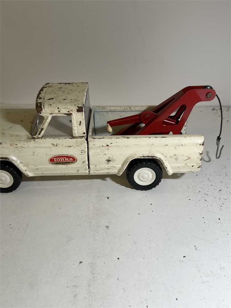 Vintage 1960s 70s Tonka White Metal Toy Wrecker Tow Truck (LBJ)
