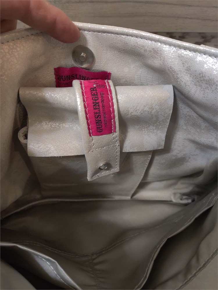 Nice off-white conceal and carry purse. Purse is made by gunslinger. Purse is set up for a 357 pistol.