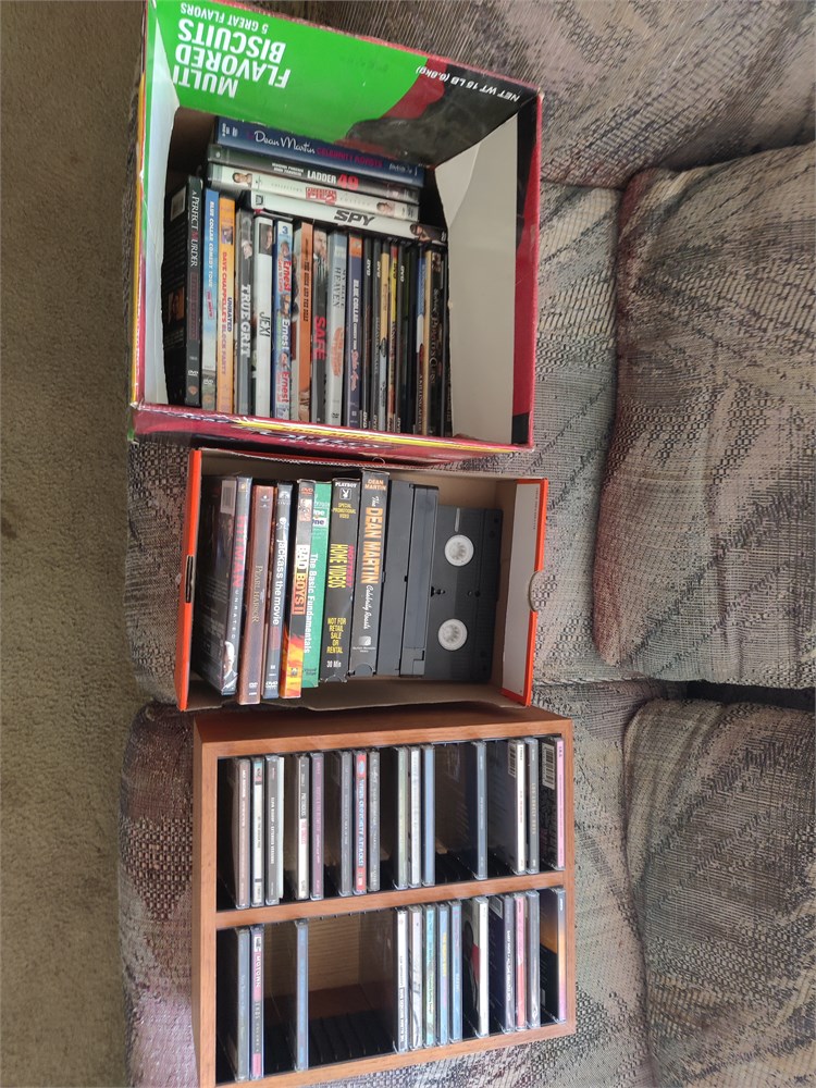 Nice lot of DVDs VHS and CDs. Look to be some modern titles.
