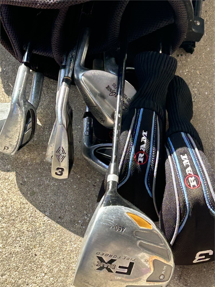 Complete set of golf clubs, iron woods, balls, bag everything to go play golf with