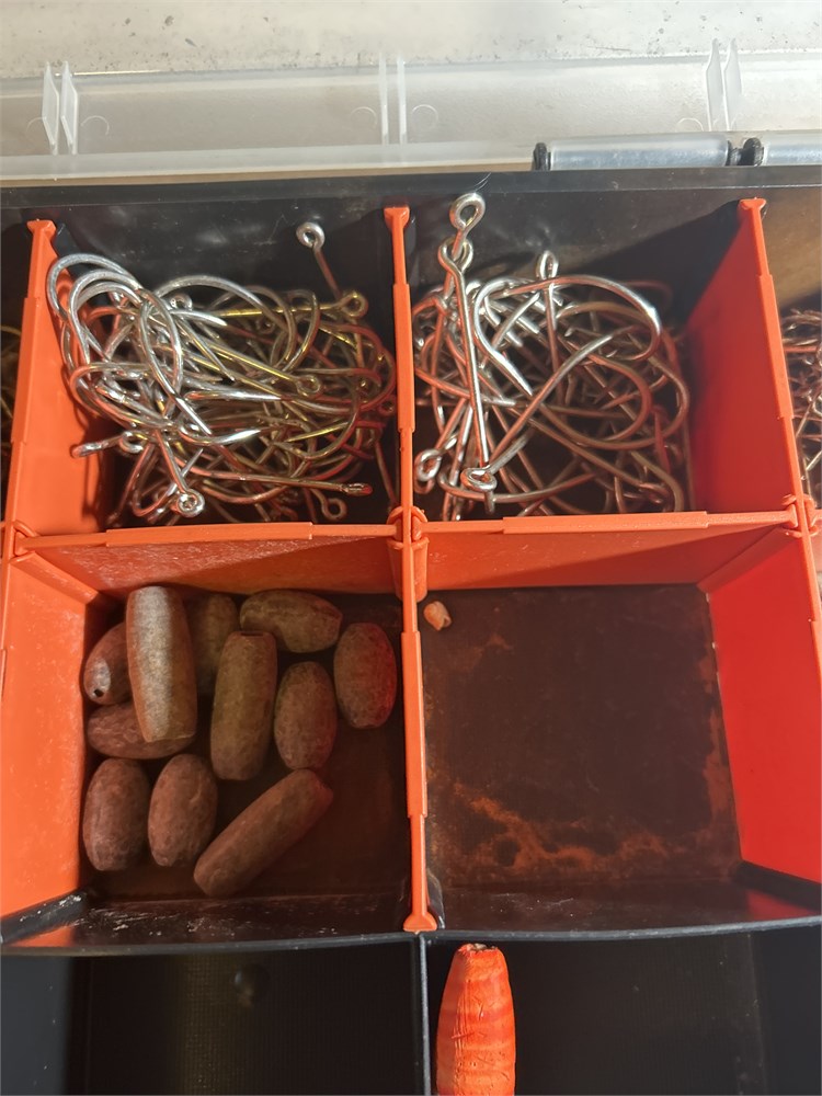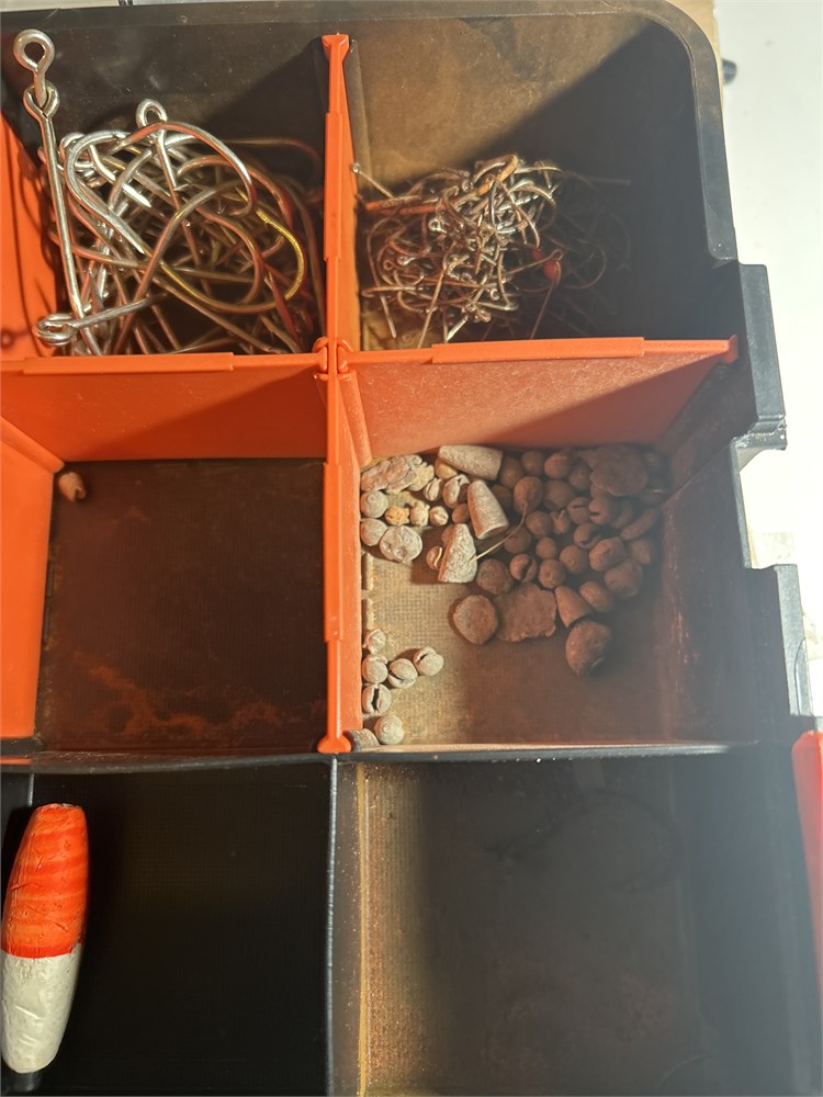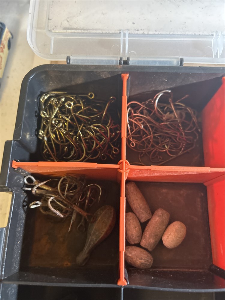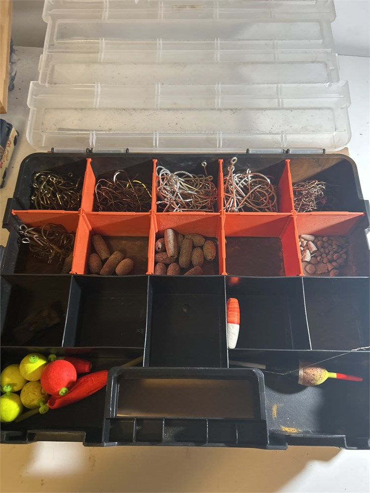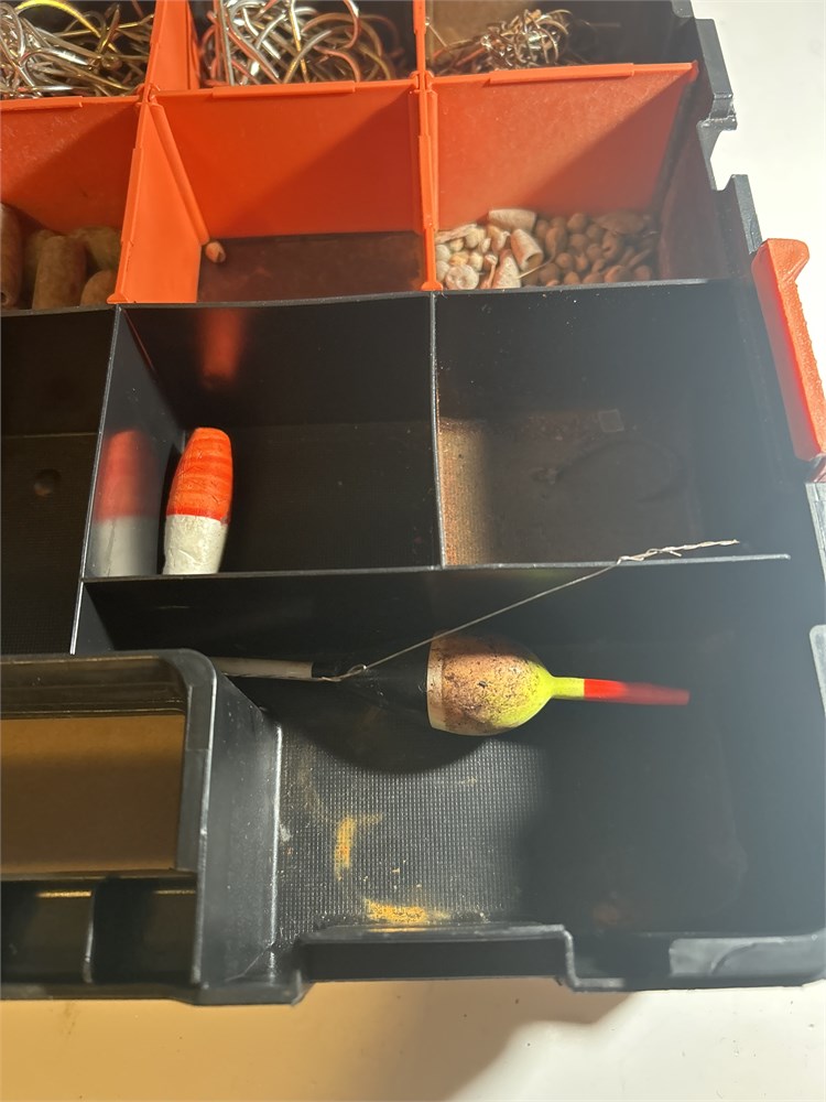 Fishing box full of hooks sinkers bobbers (L)