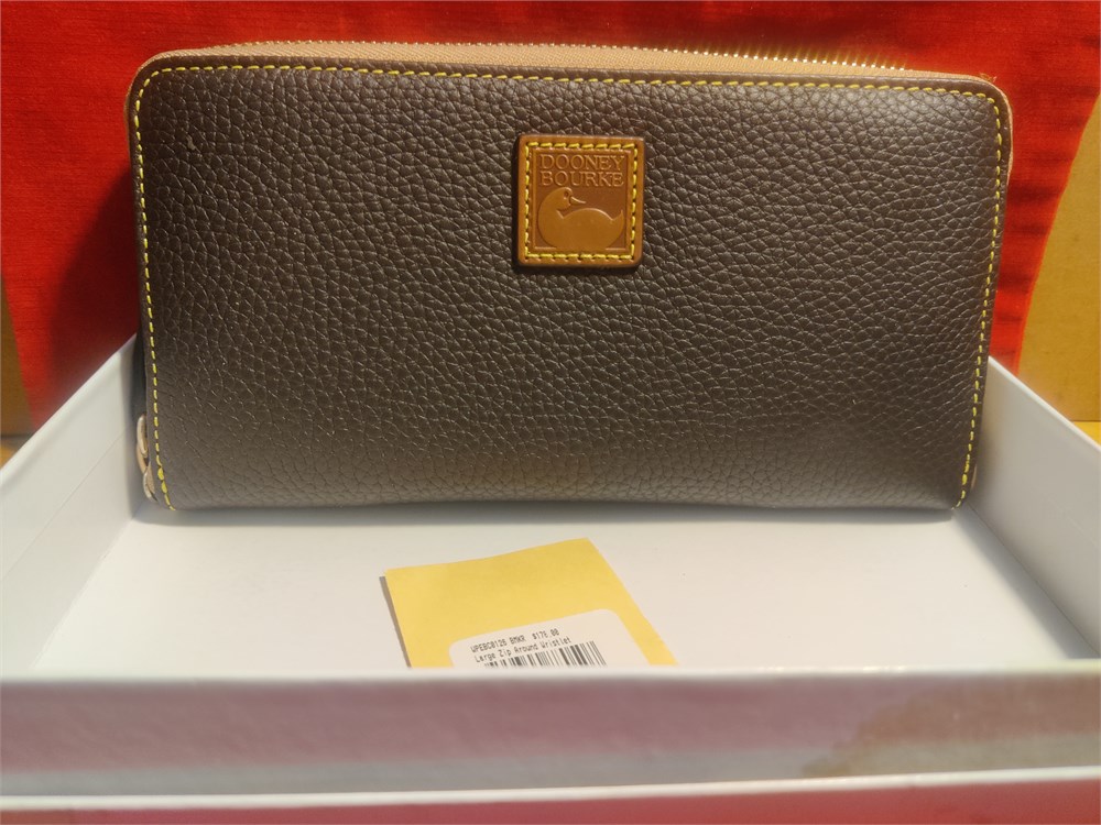 New with tags Dooney & Bourke large zip around wristlet. Box is not in the best condition. But the item itself is excellent. Wristlet has the original price tag of $176 included.