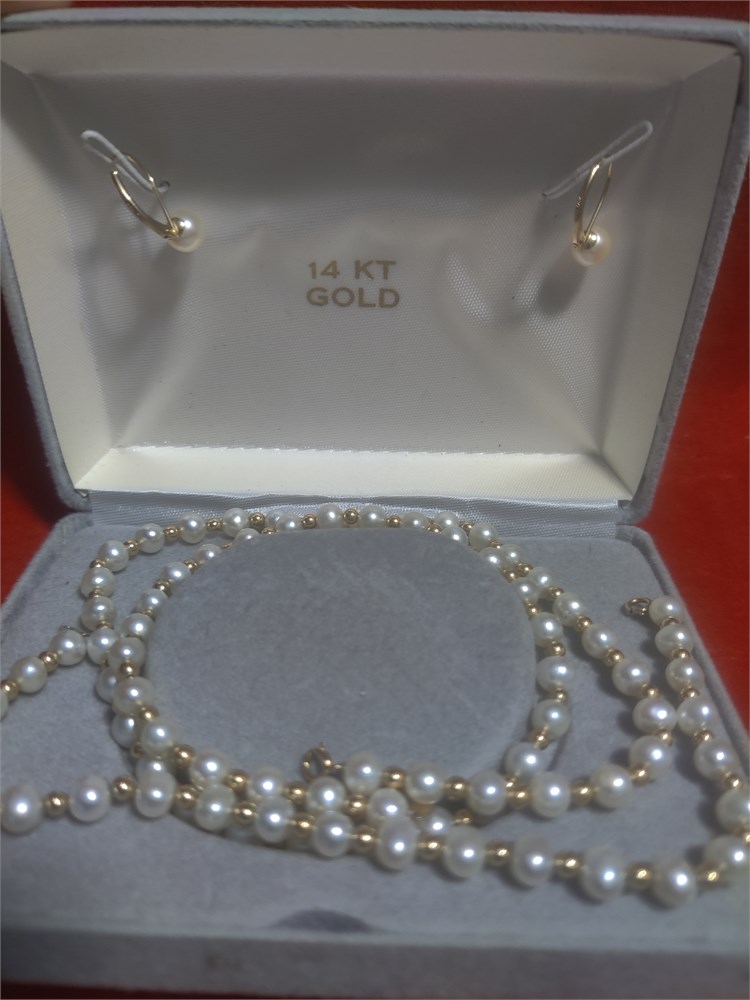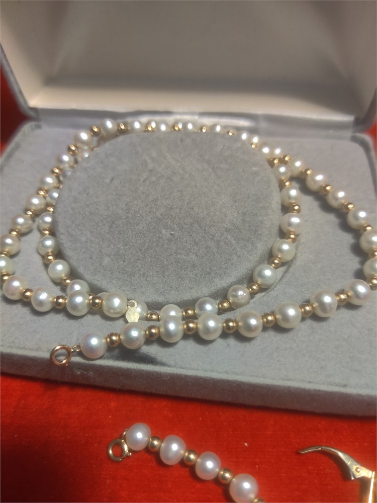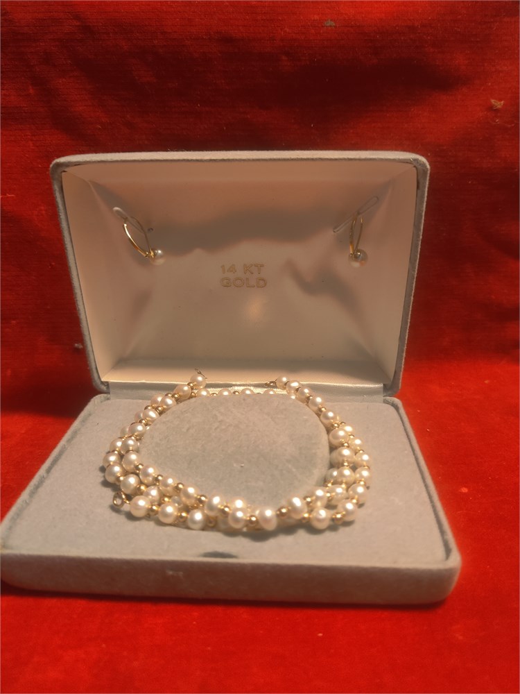 14k Gold Pearl Necklace, Bracelet & Earrings 20.30g(R)
