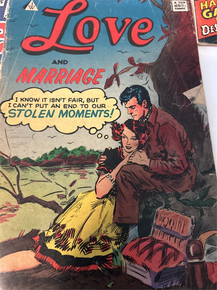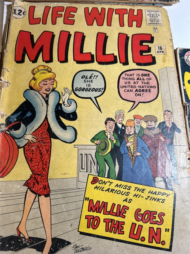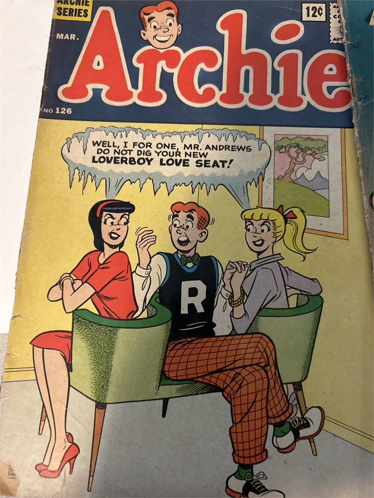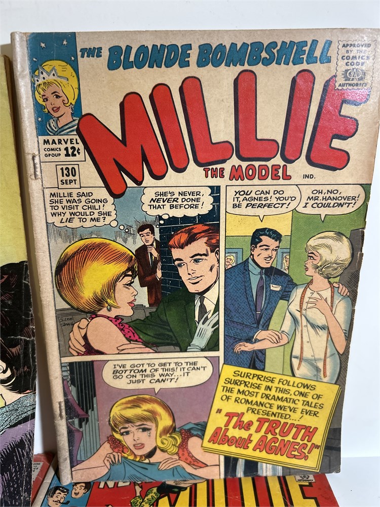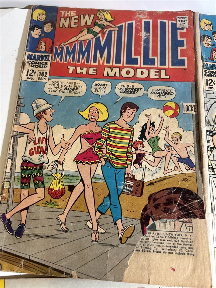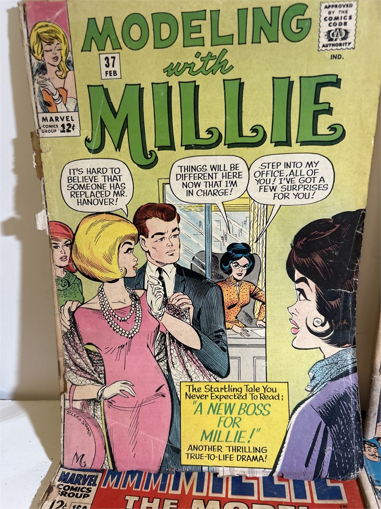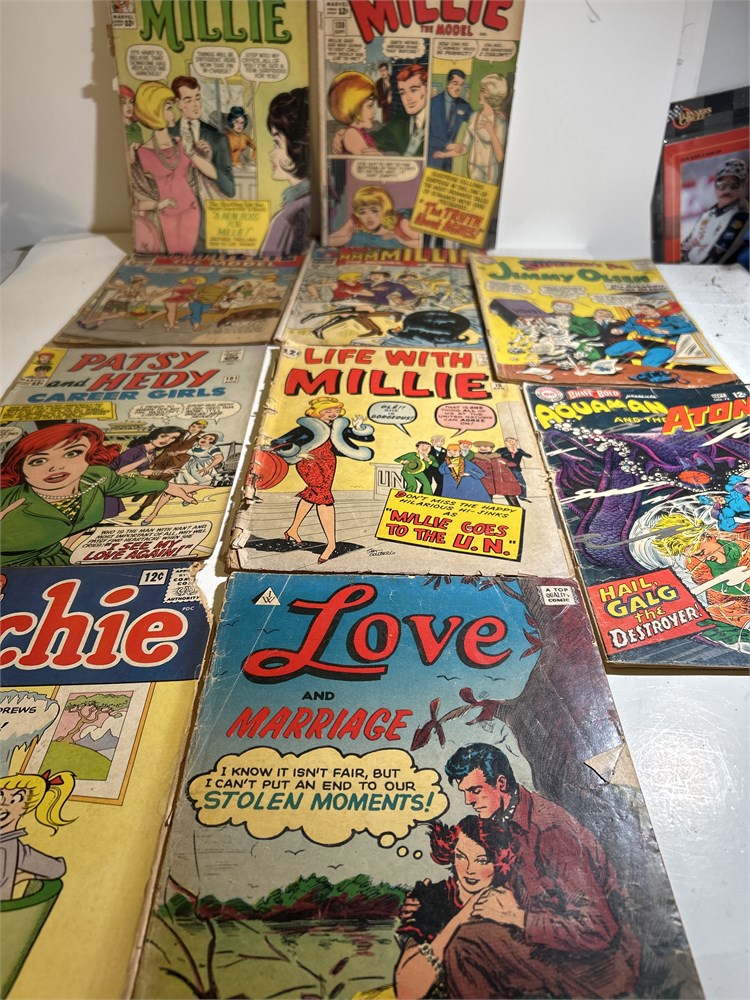 Modeling Millie, books 12 centers very very old the Archies all $.12 books, love and marriage Aquaman and Adam and Jimmy Olsen  all very highly collectible