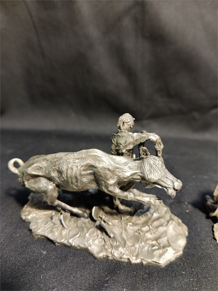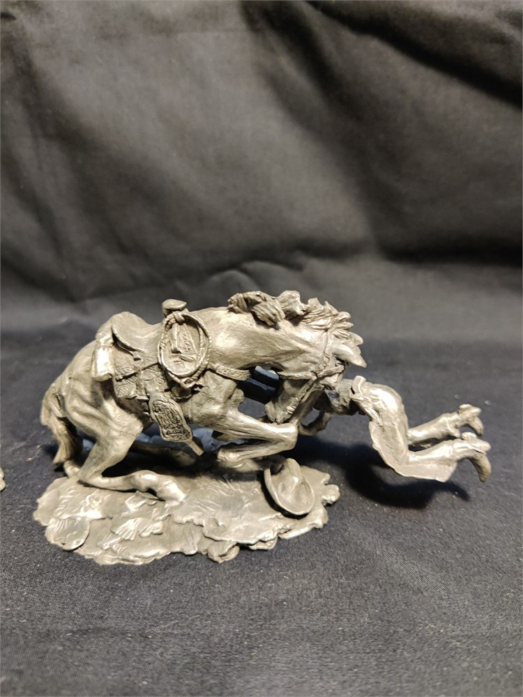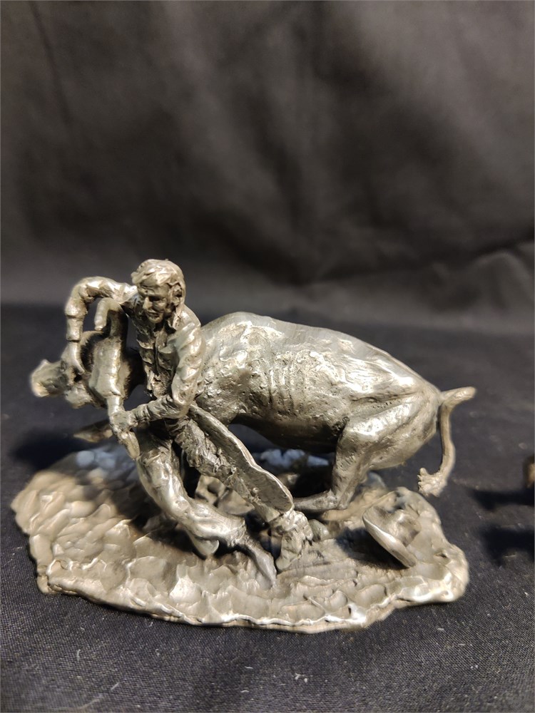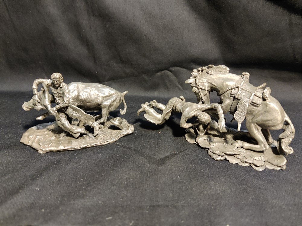 Two very nicely detailed cowboy / rodeo figures. One is bronco busting the other is wrestling a steer to the ground. We'll figures are by Heritage.