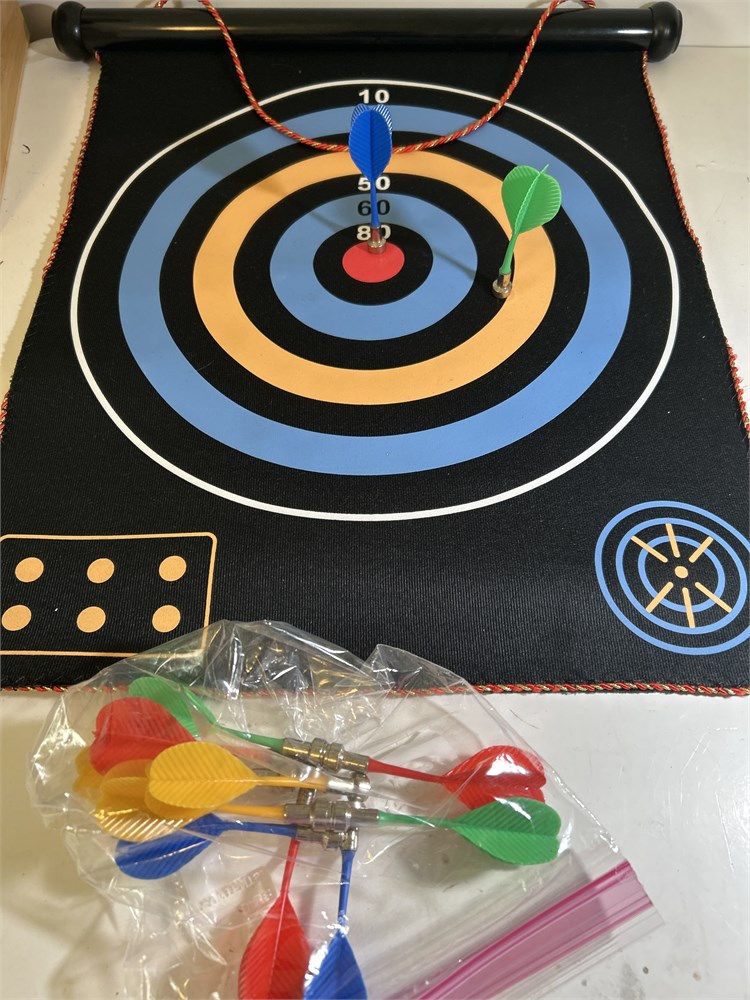 Magnetic Portable Hanging Dart Board One-Sided Roll-Up Black 14.5x18" (C1)