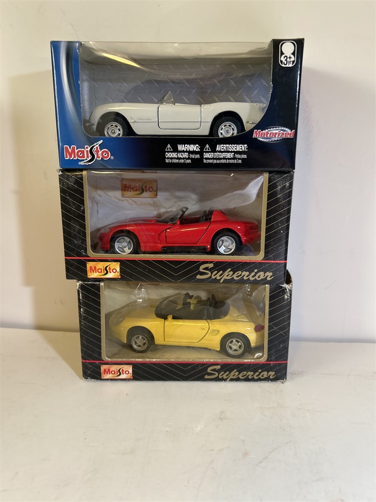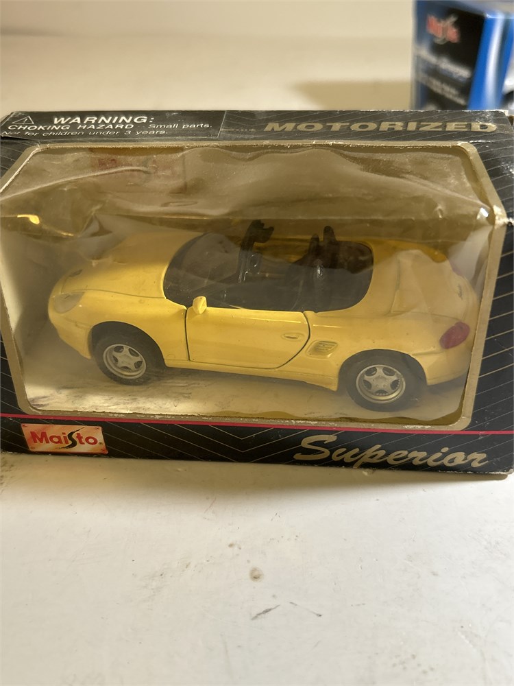 MAISTO SUPERIOR 1:43 SCALE PORSCHE BOXSTER - YELLOW BOXED DIECAST MODEL New  Maisto 1/39 Scale Power Racer1953 Corvette Motorized Diecast White NIB #21001 and Viper