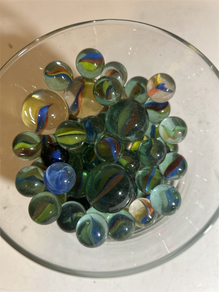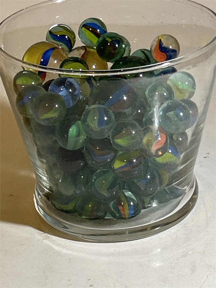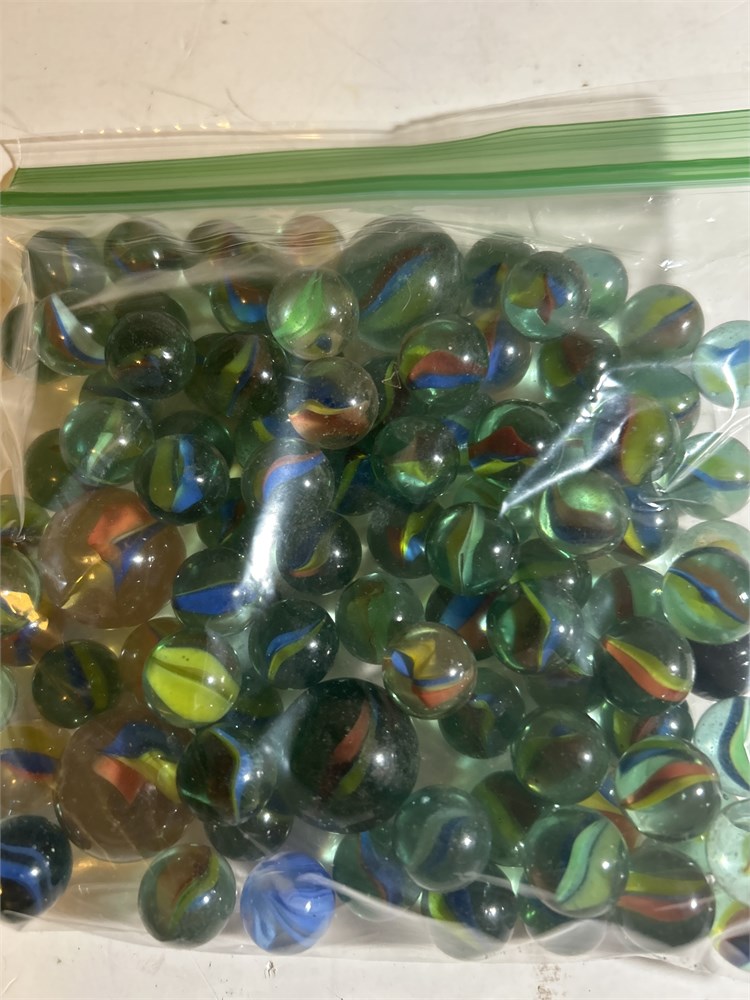 Assortment of different color marbles large home small ones over  50