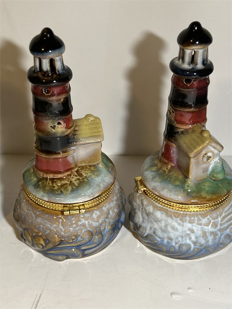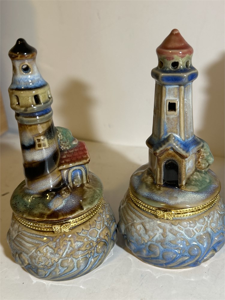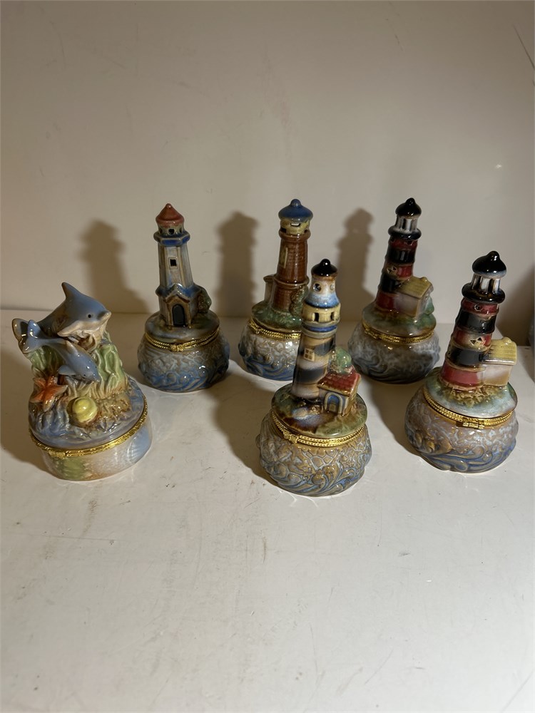 Set of 5 Shiny Ceramic Lighthouse Trinket Jewelry Box Lidded - 6"T x 3"W eBay 12.99each