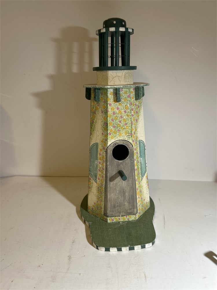 Lighthouse /Birdhouse Figurine - Hand-Painted 12 x 5”