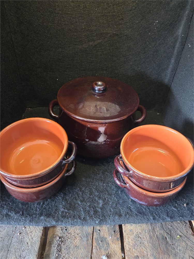 6 piece Clay Bean/Soup Pot and bowls