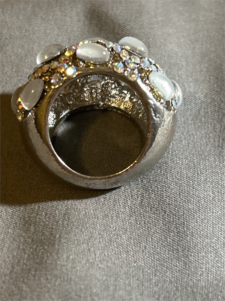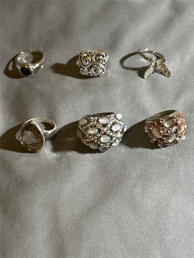 Assortment cocktail rings, black stones, white stones round stones Size 6 1/2 and7 1/2