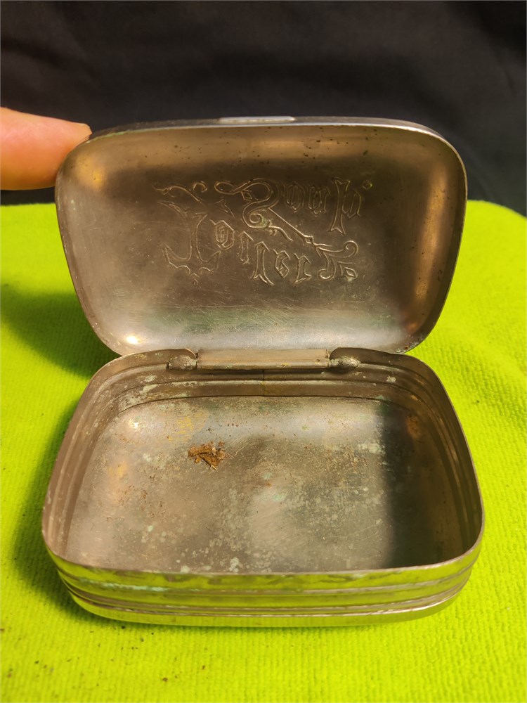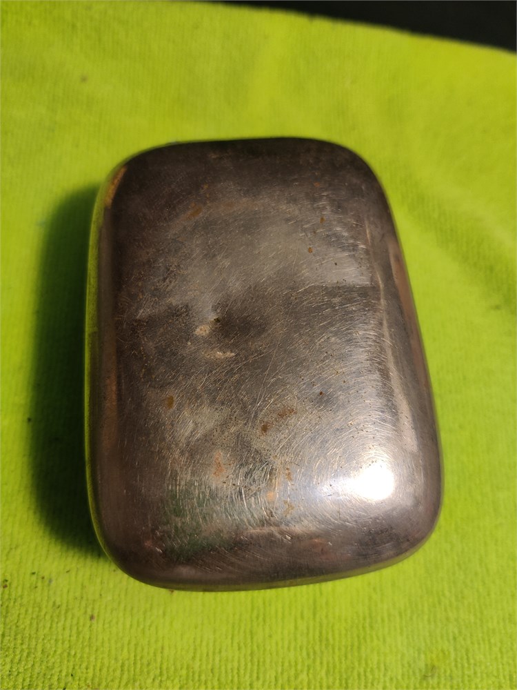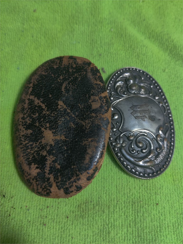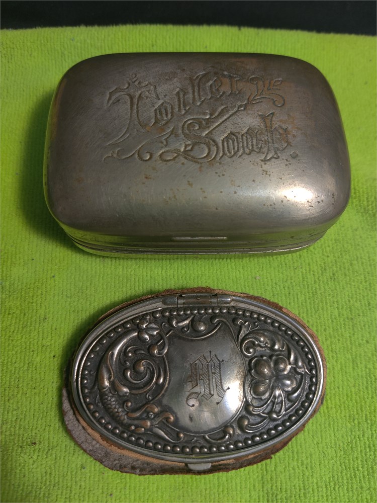 Vintage Silver Toned Alumium Hinged Toilet Soap Holder. Also includes vintage compact with leather case. Leather case is in two pieces.