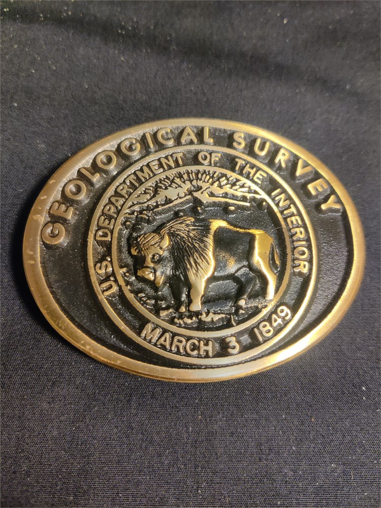 Geological Survey United States Geologist USGS Solid Brass Vintage Belt Buckle (