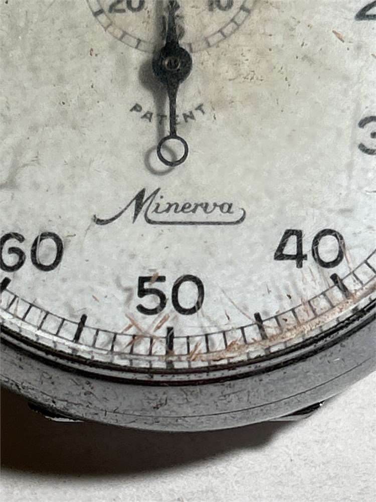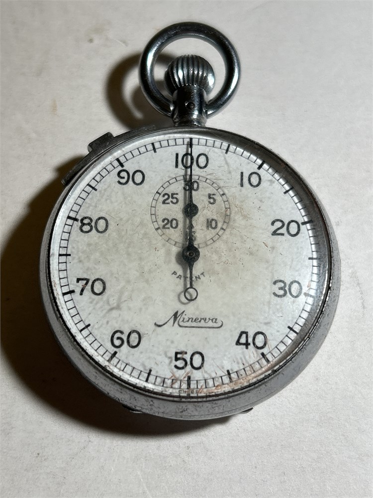 VINTAGE MINERVA SWISS MADE SILVER TONE WIND UP STOPWATCH.(L)