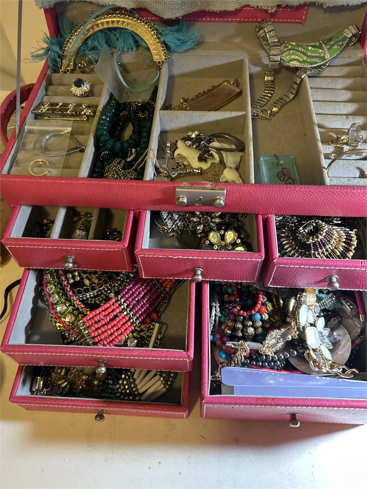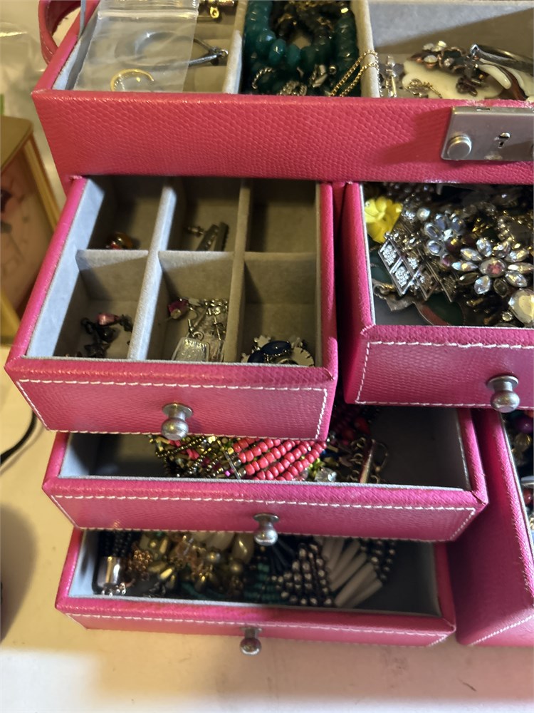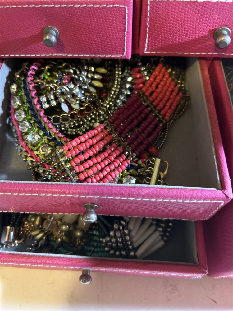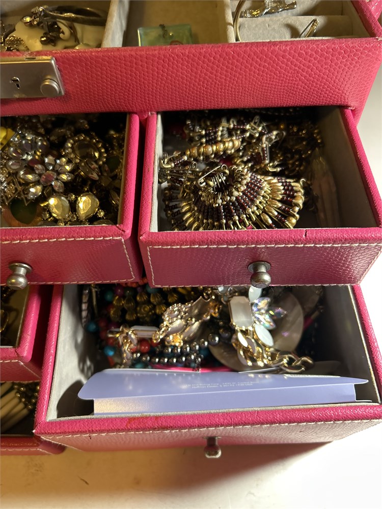 Assortment ring earrings, necklaces bracelets, six drawers Totally full and the top included