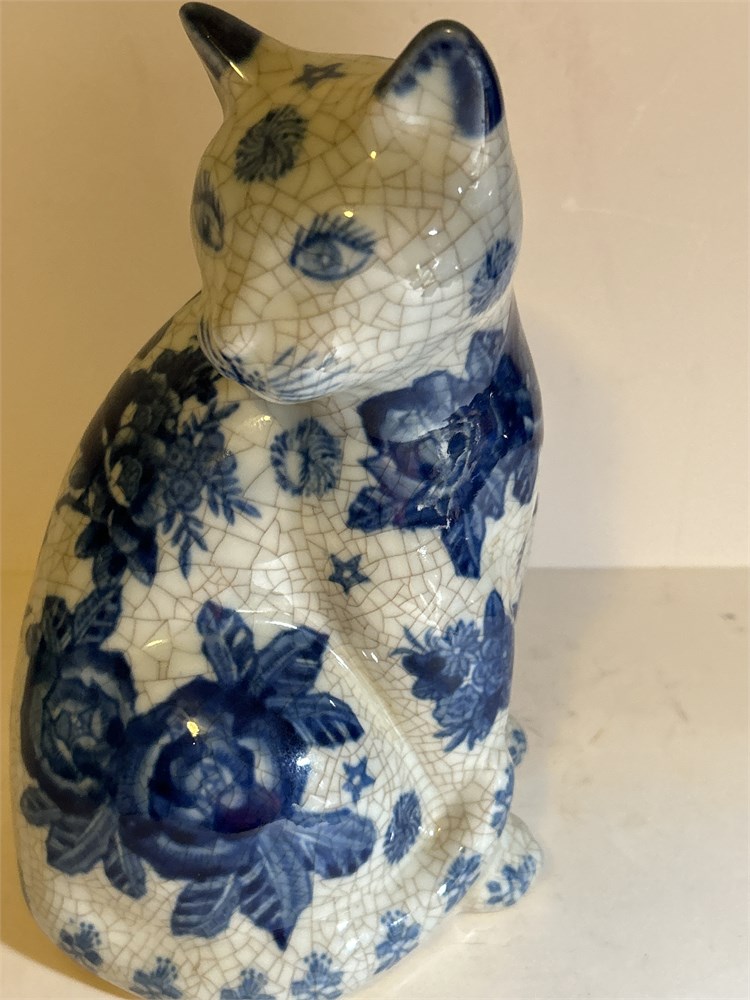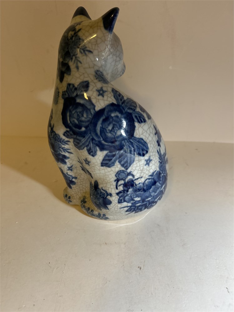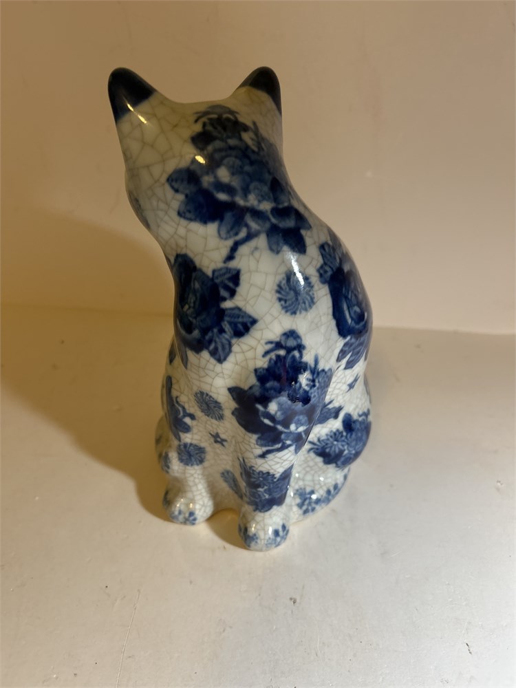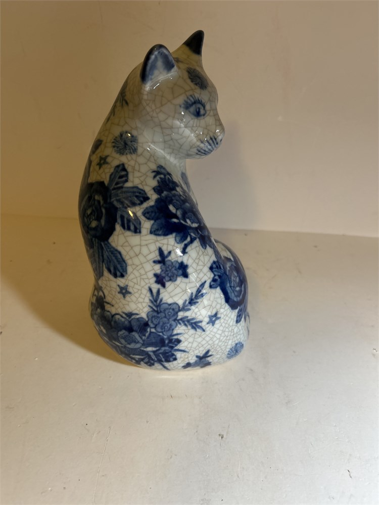 Vintage Porcelain Cat Blue Chinese character on bottom (LB)