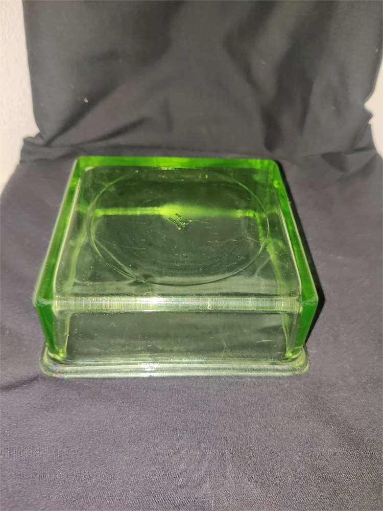 Vintage Anchor Hocking Green Vaseline Uranium Glass Rectangle Dish Bowl 4x4.5 (R