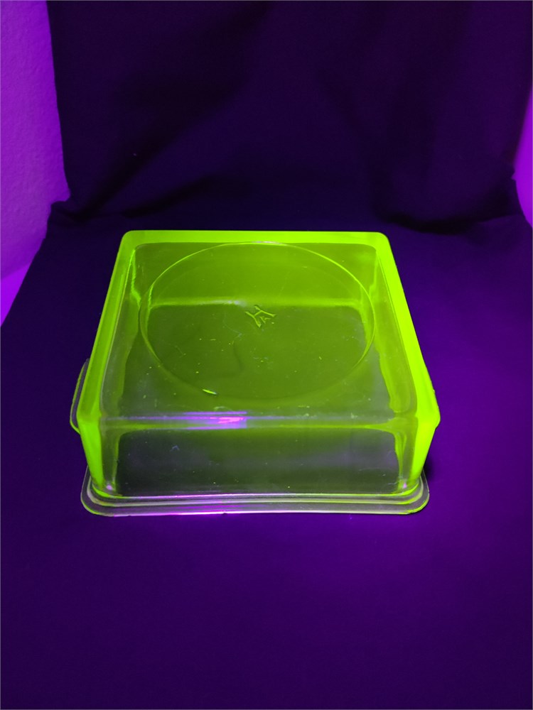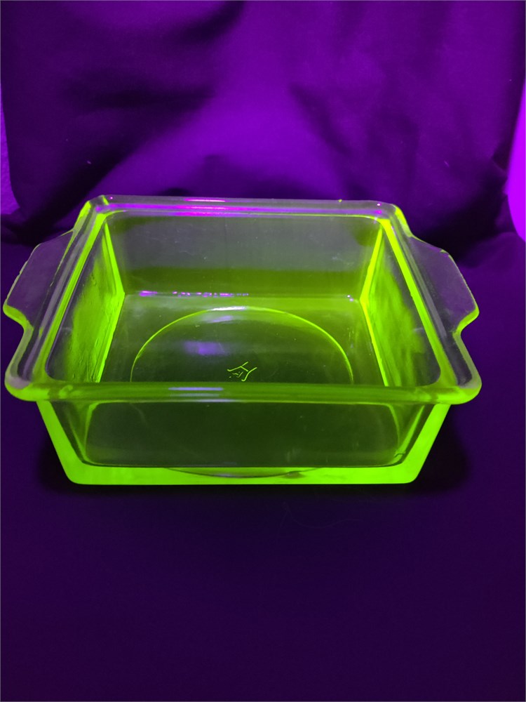 Vintage Anchor Hocking Green Vaseline Uranium Glass Rectangle Dish Bowl 4x4.5.