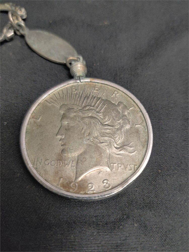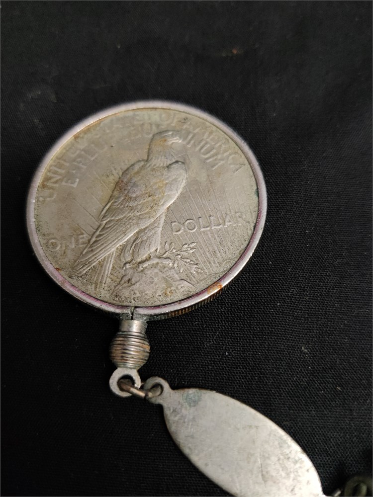 1923 peace dollar. Peace dollar is set as keychain. $1 is in decent condition.