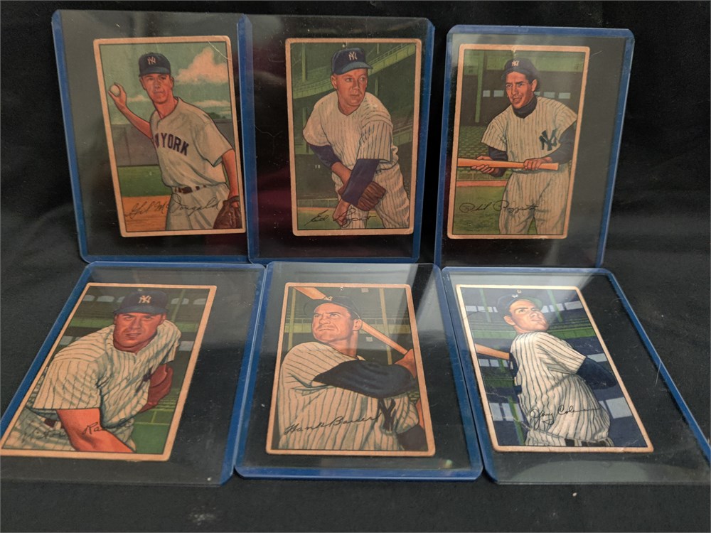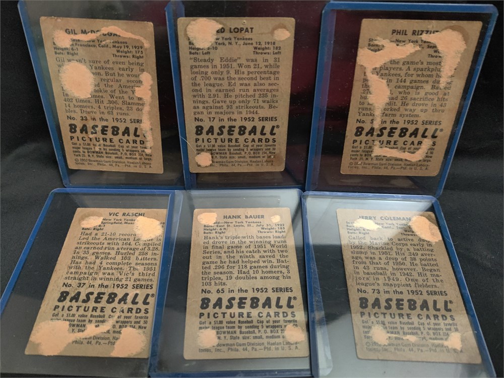 1952 Bowman baseball cards lot of six. The cords all have nice pictures on front but all have paper attached from notebook on back. This lot includes Hall of famer Phil Rizzuto.