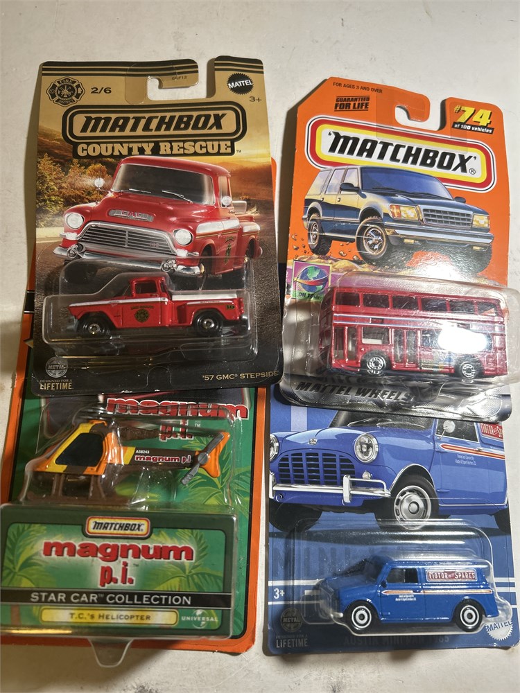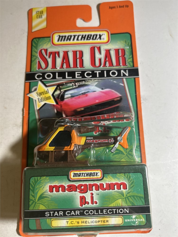 Magnum PI helicopter country rescue pick up London bus and Austin minivan 1965