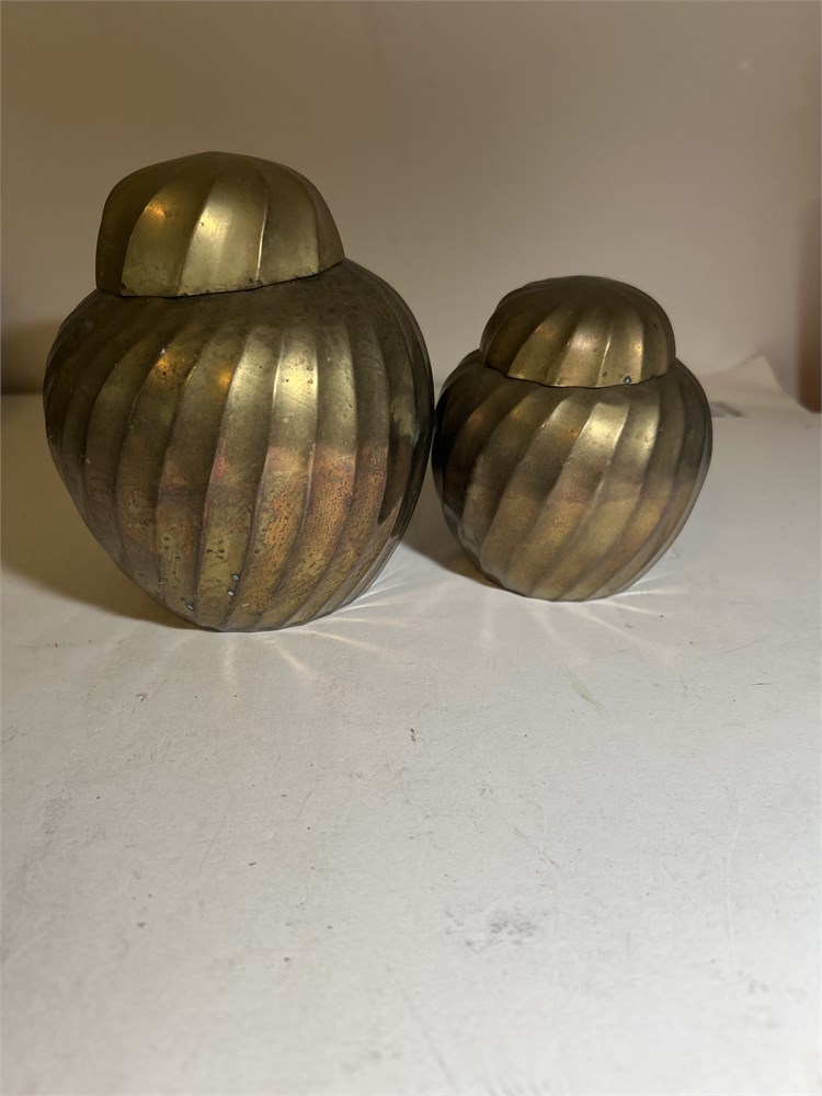 Two Brass Ginger Jar 5-1/2" Tall w/lid 2.57 lb