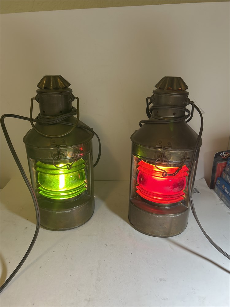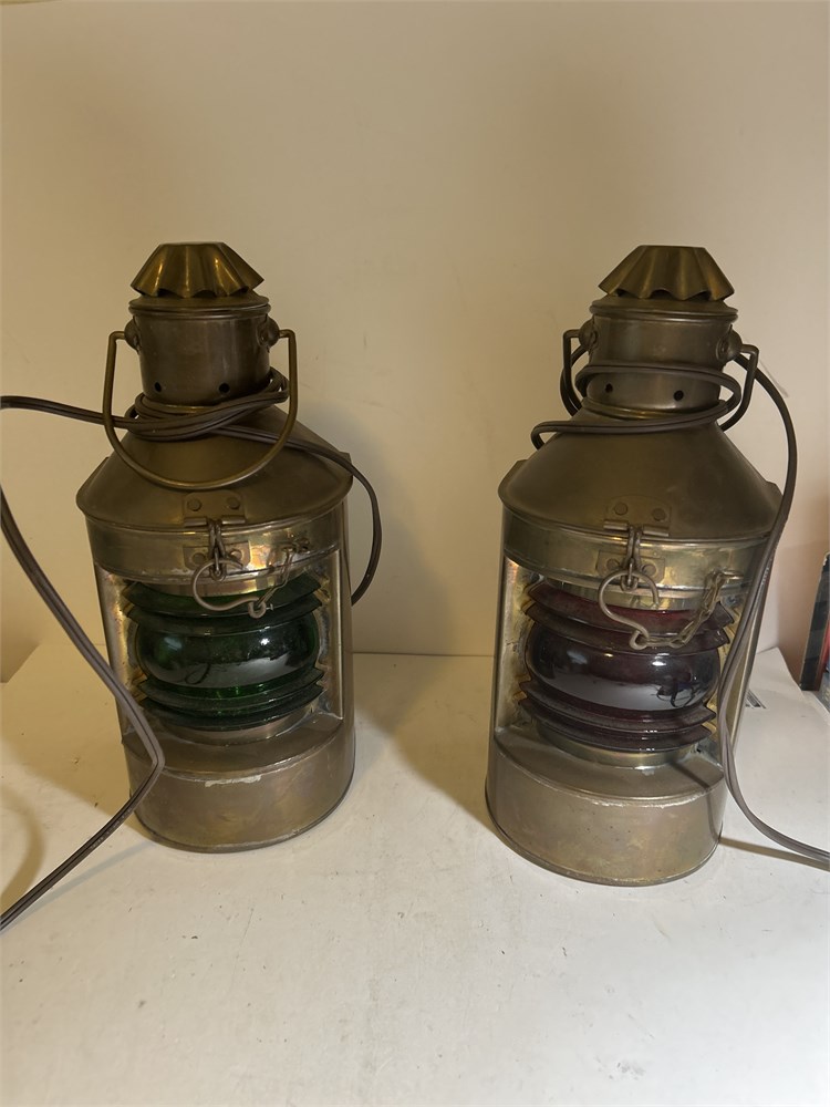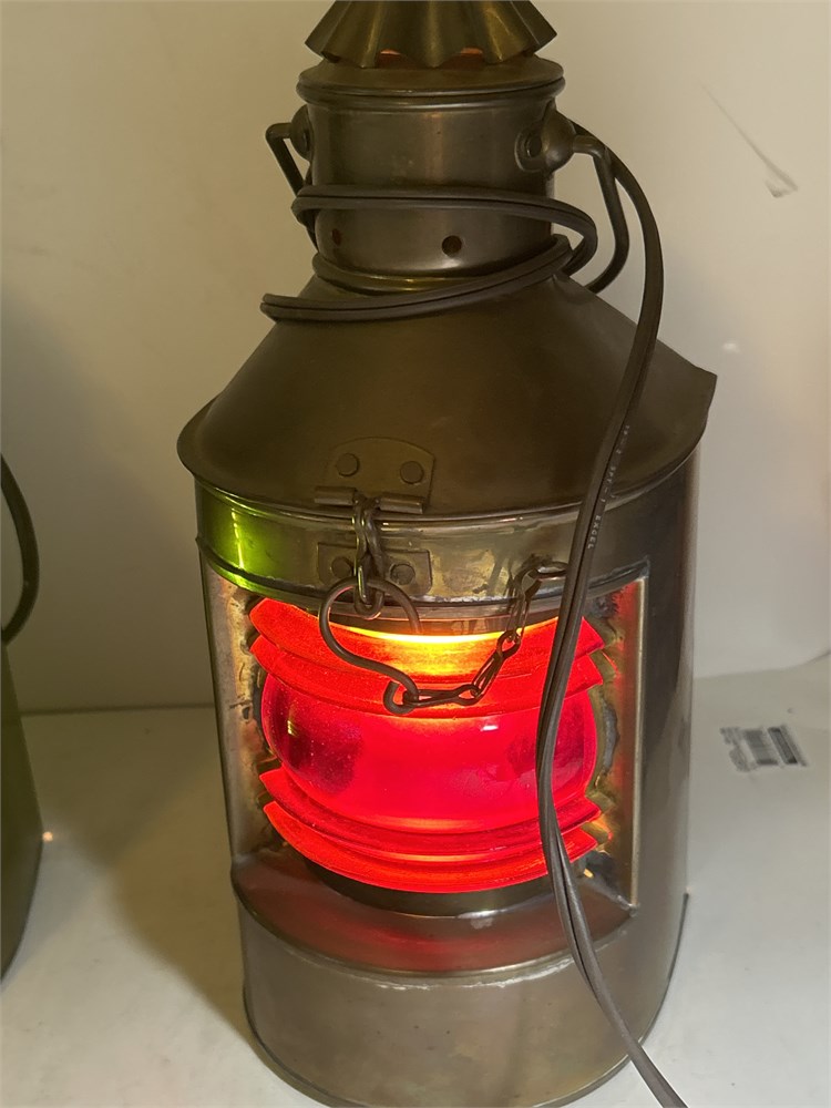 Set of 2 Antique Anchor Oil Lamp, Vintage Marine Lantern, Nautical Ship Oil Lamp They’ve been converted over to electric lightbulbs still all original