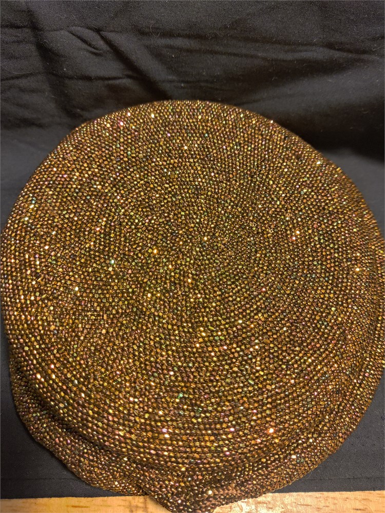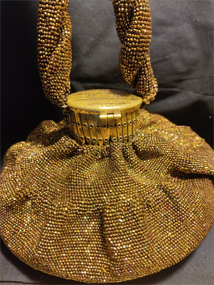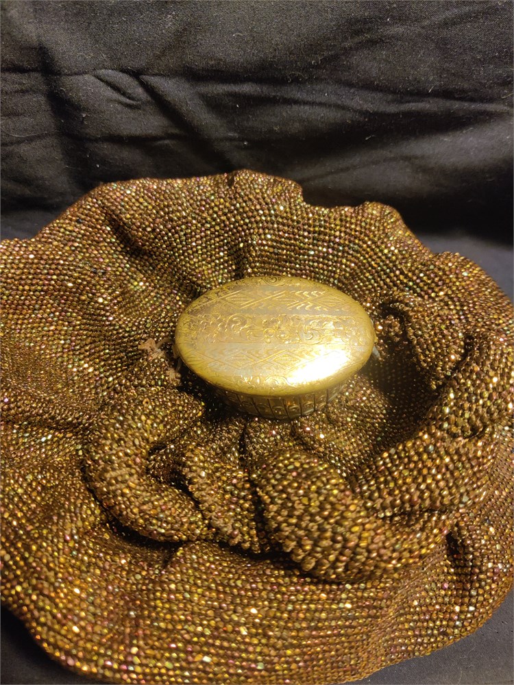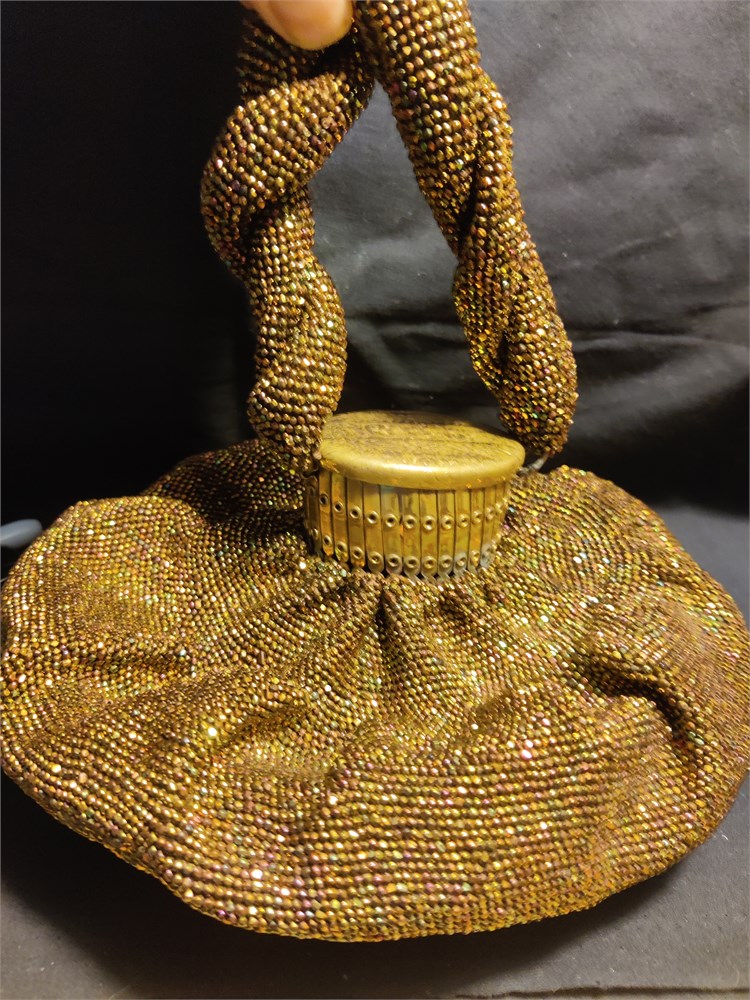Vintage Bronze sparkling Beaded round Evening Bag, purse, expanding top (R)