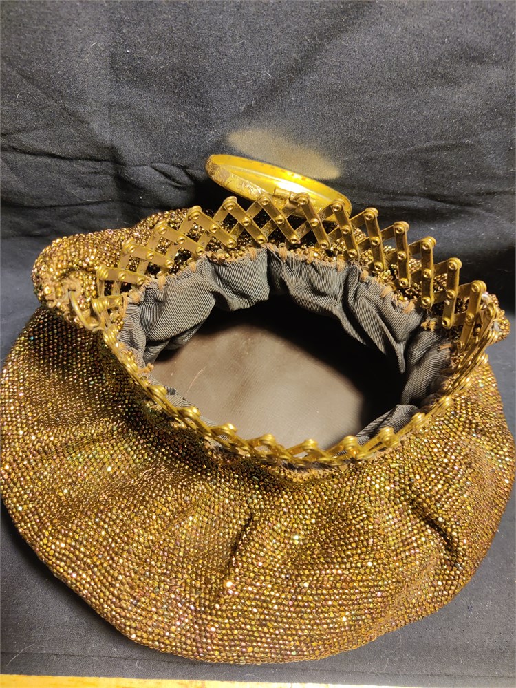 Vintage Bronze sparkling Beaded round Evening Bag/purse metal expanding top.