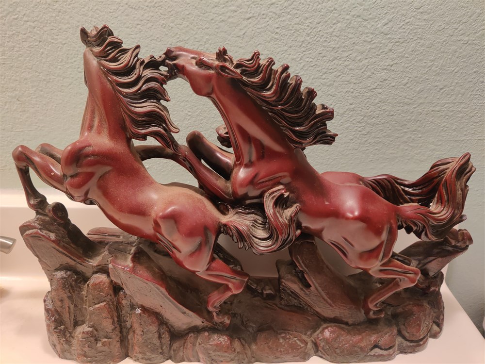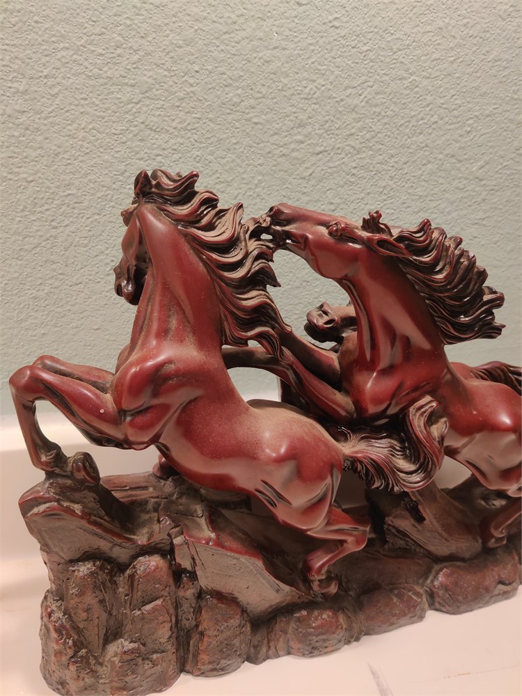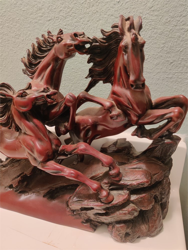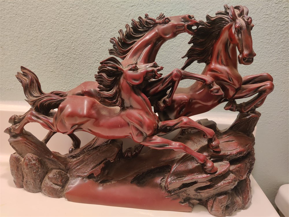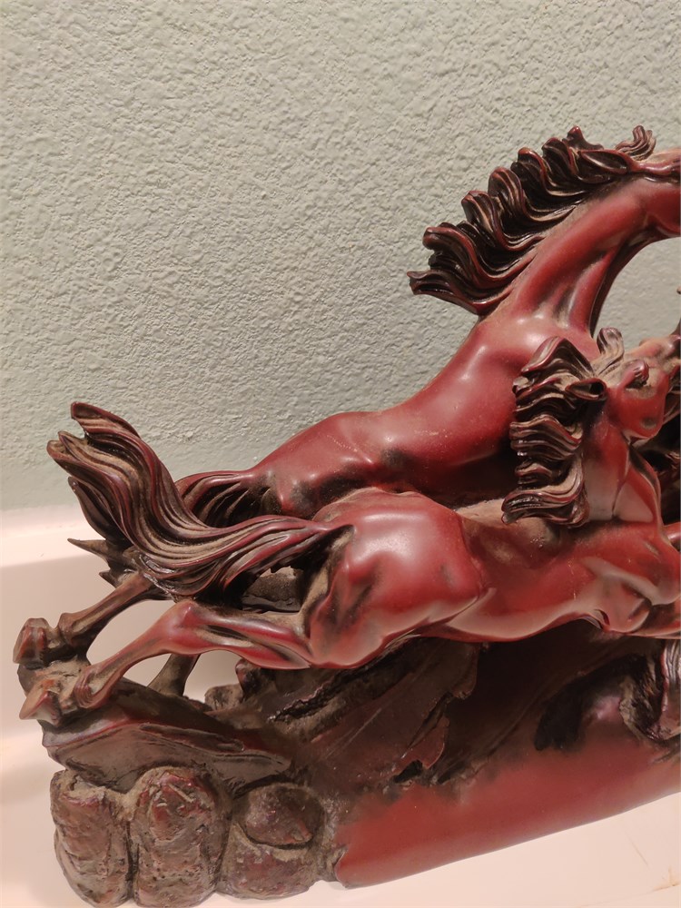 Vintage Chinese Red Cast Resin Carved Statue Figurine Galloping Horses (C3)