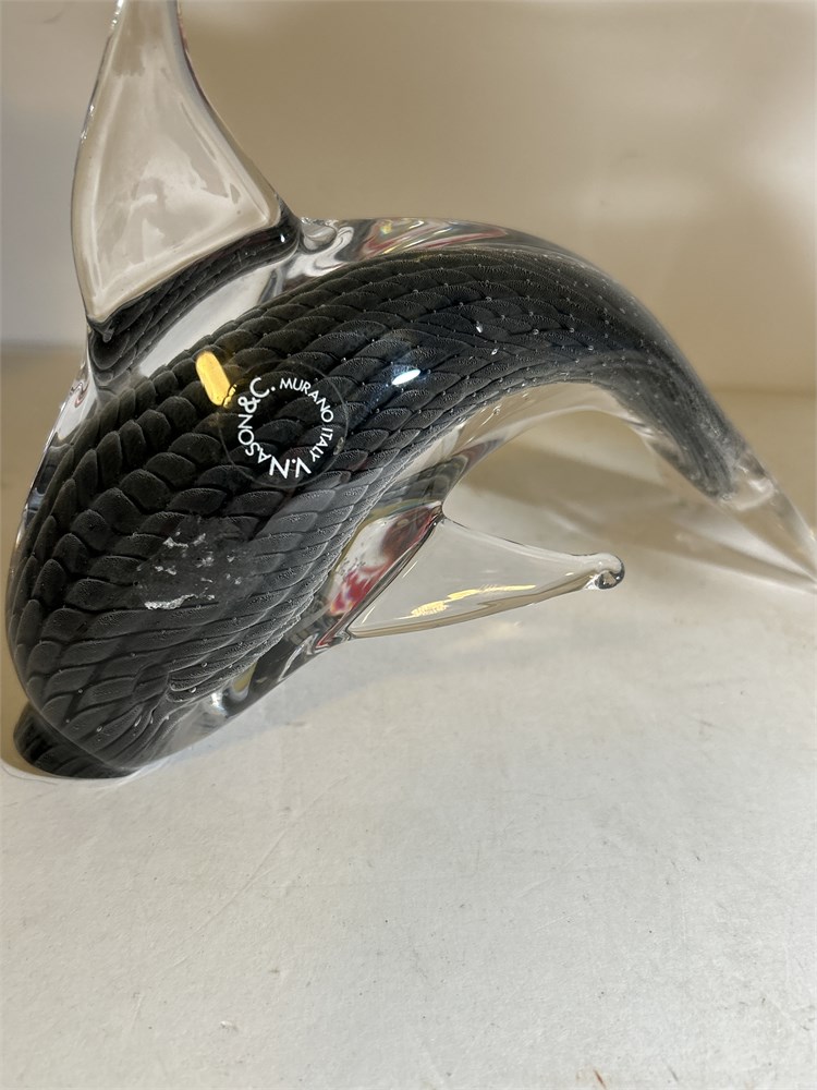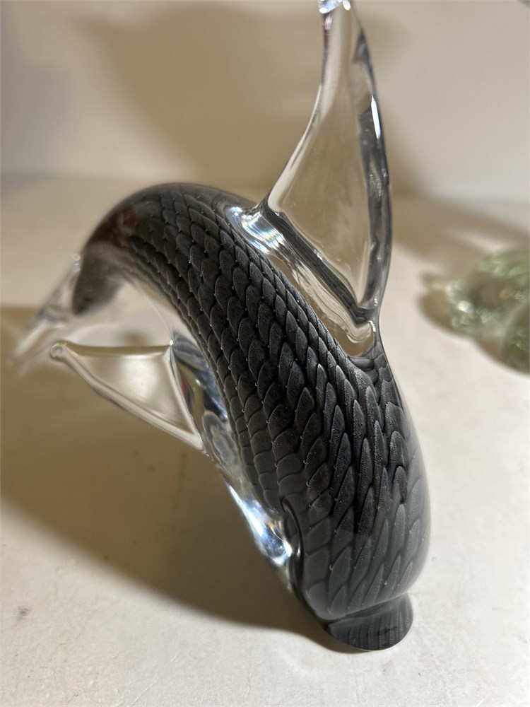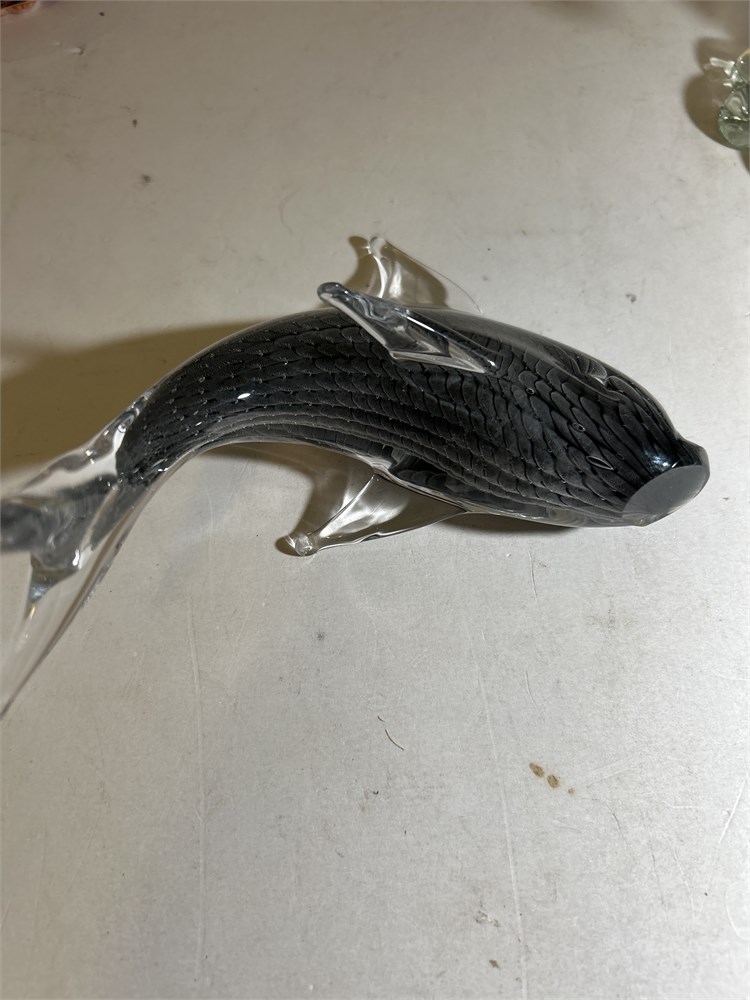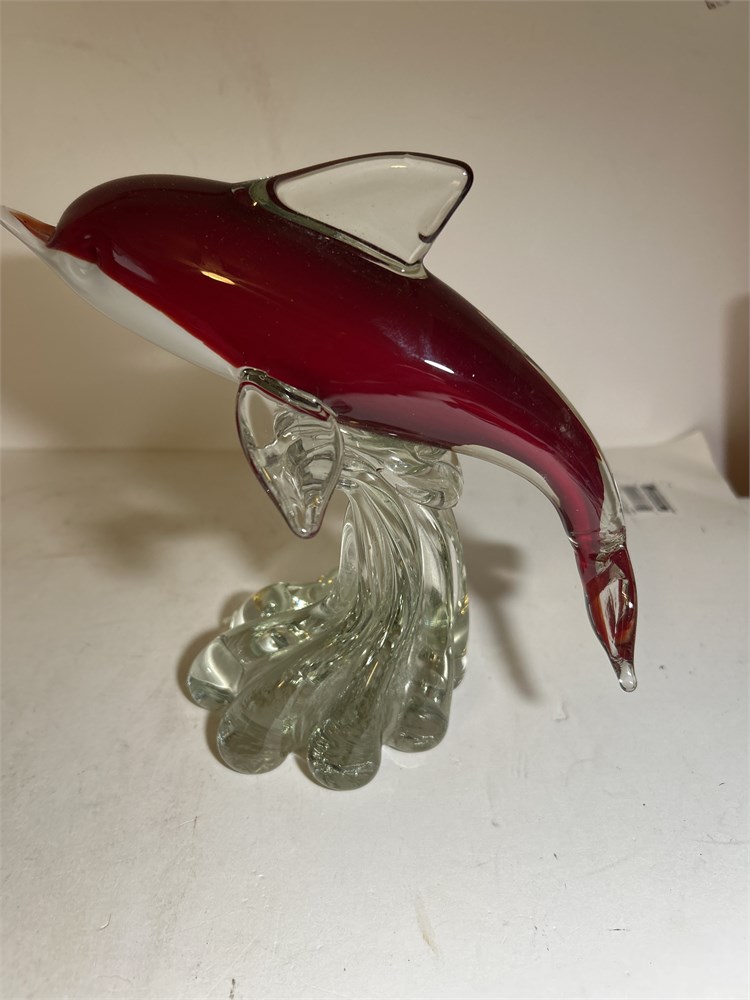 Have a grey dolphin glass 7 inches long approximately 5 1/2 inches tall second one is a red dolphin 9 inches long 8 inches tall glass bolts are in excellent shape