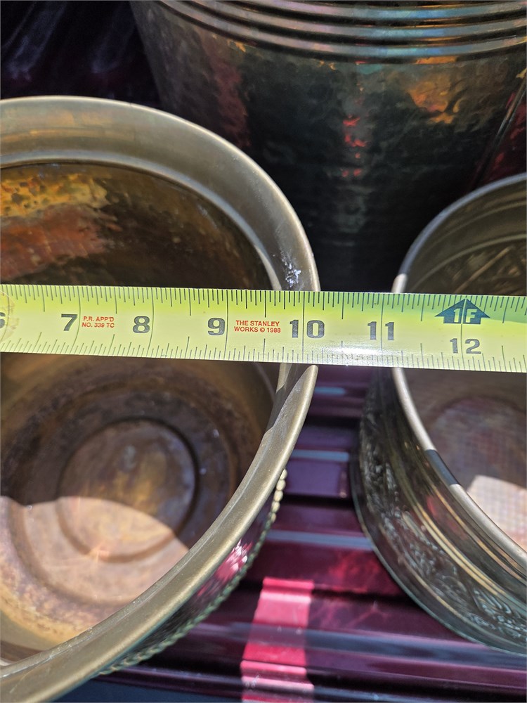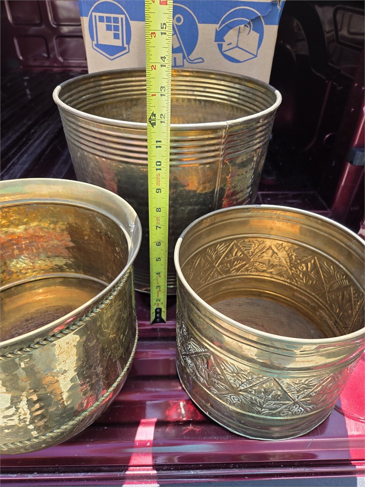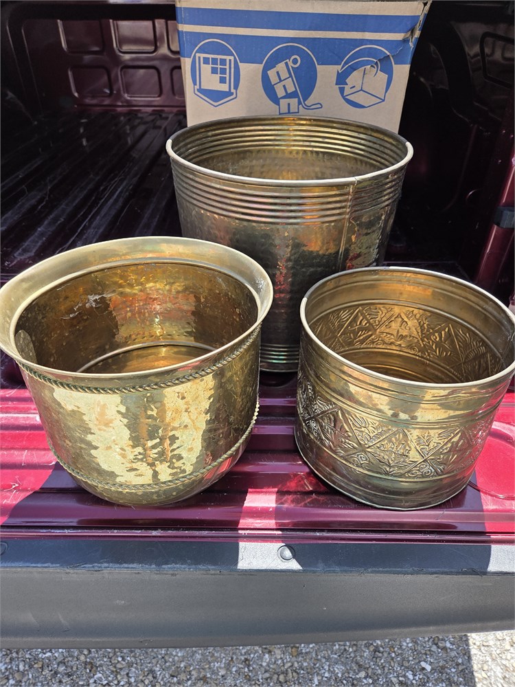 Lot of 3 Brass looking planters. See pics for sizes, all are different.