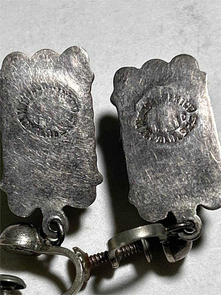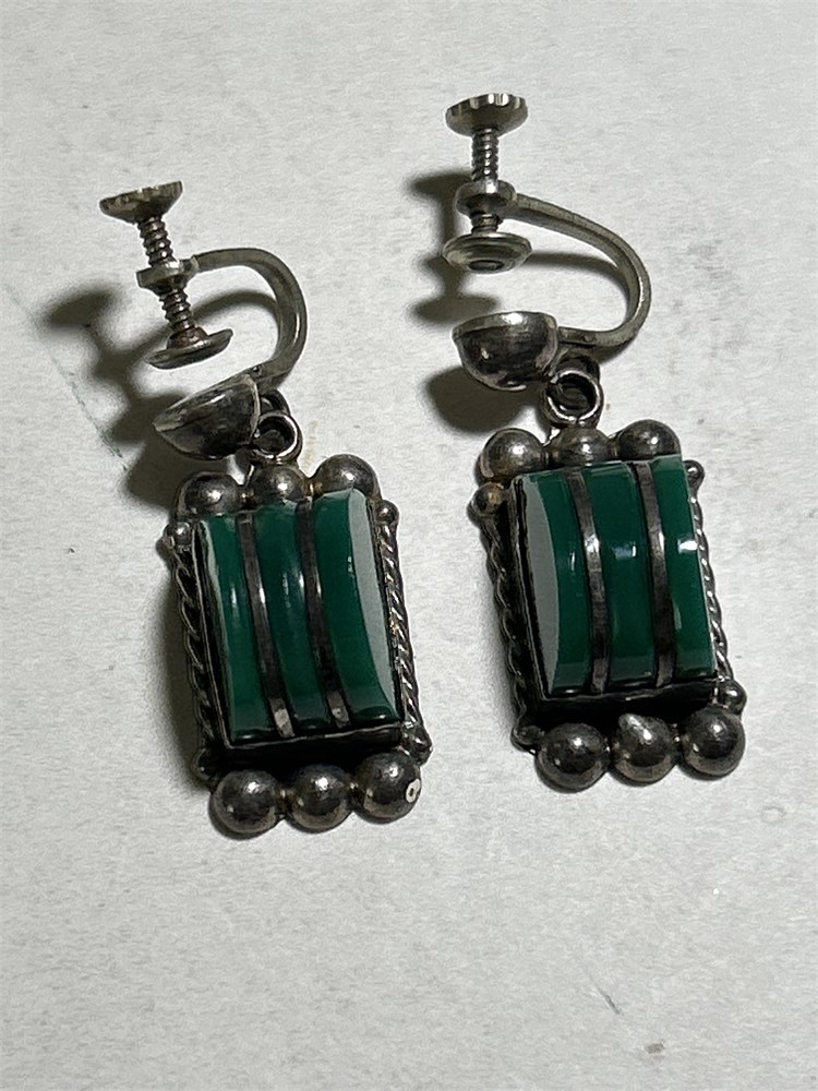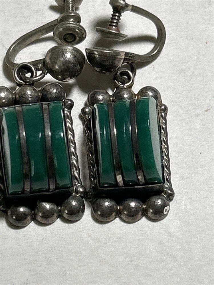 Vintage sterling silver earrings with green opal stones 9.99 g