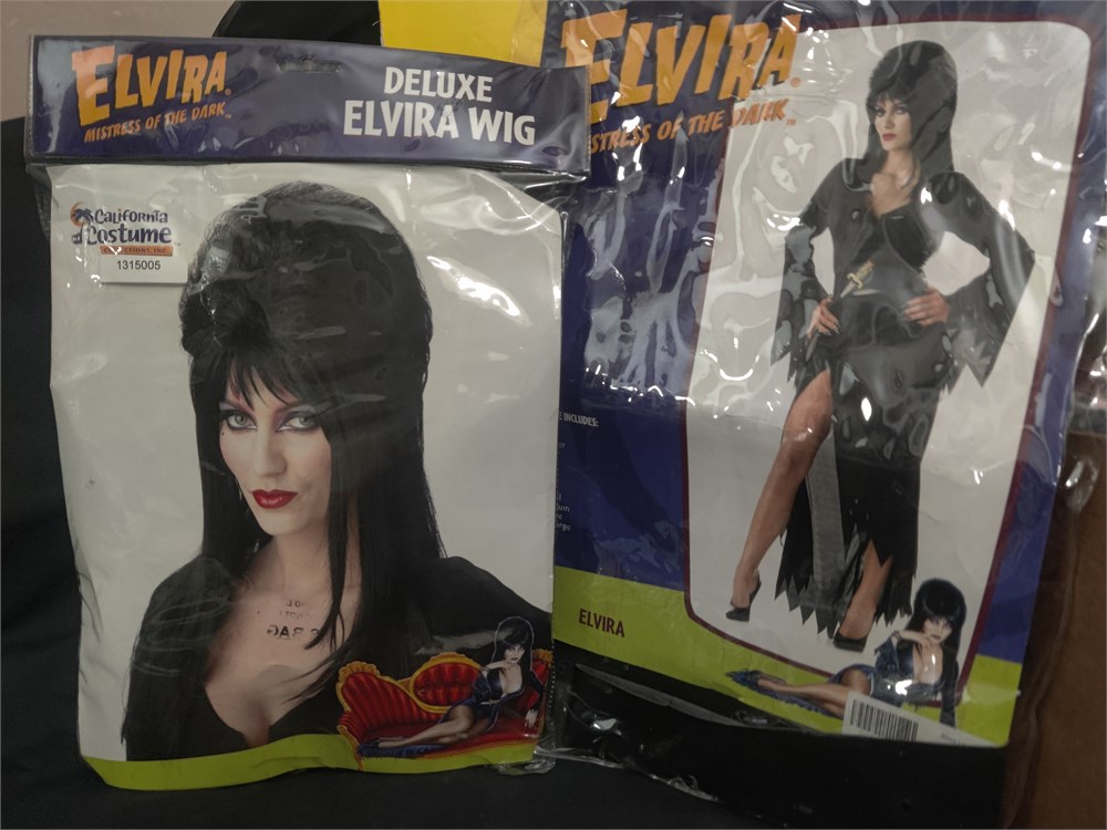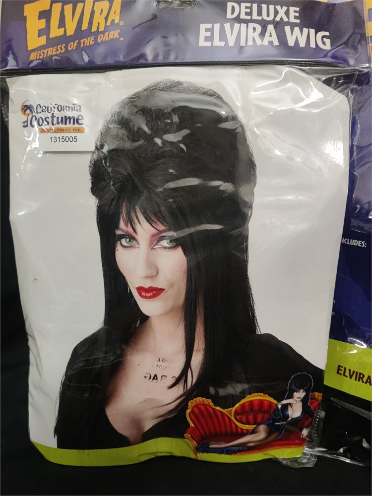 Elvira costume. Includes Mistress of the Dark large dress and deluxe Elvira wig.